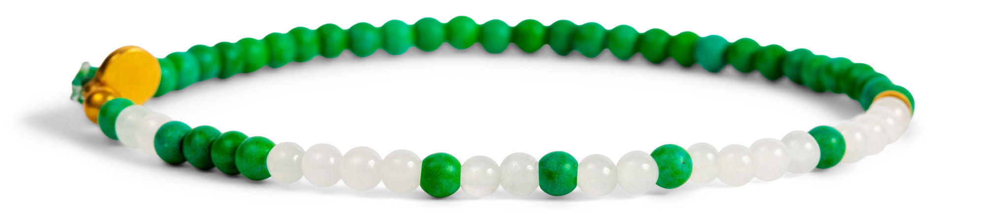 How to read your jewelry: A Morse Code dot is one bead and a dash is two beads in the alternating colors. Start at the small gold spacer bead and follow the Morse Code spelling around the bracelet!