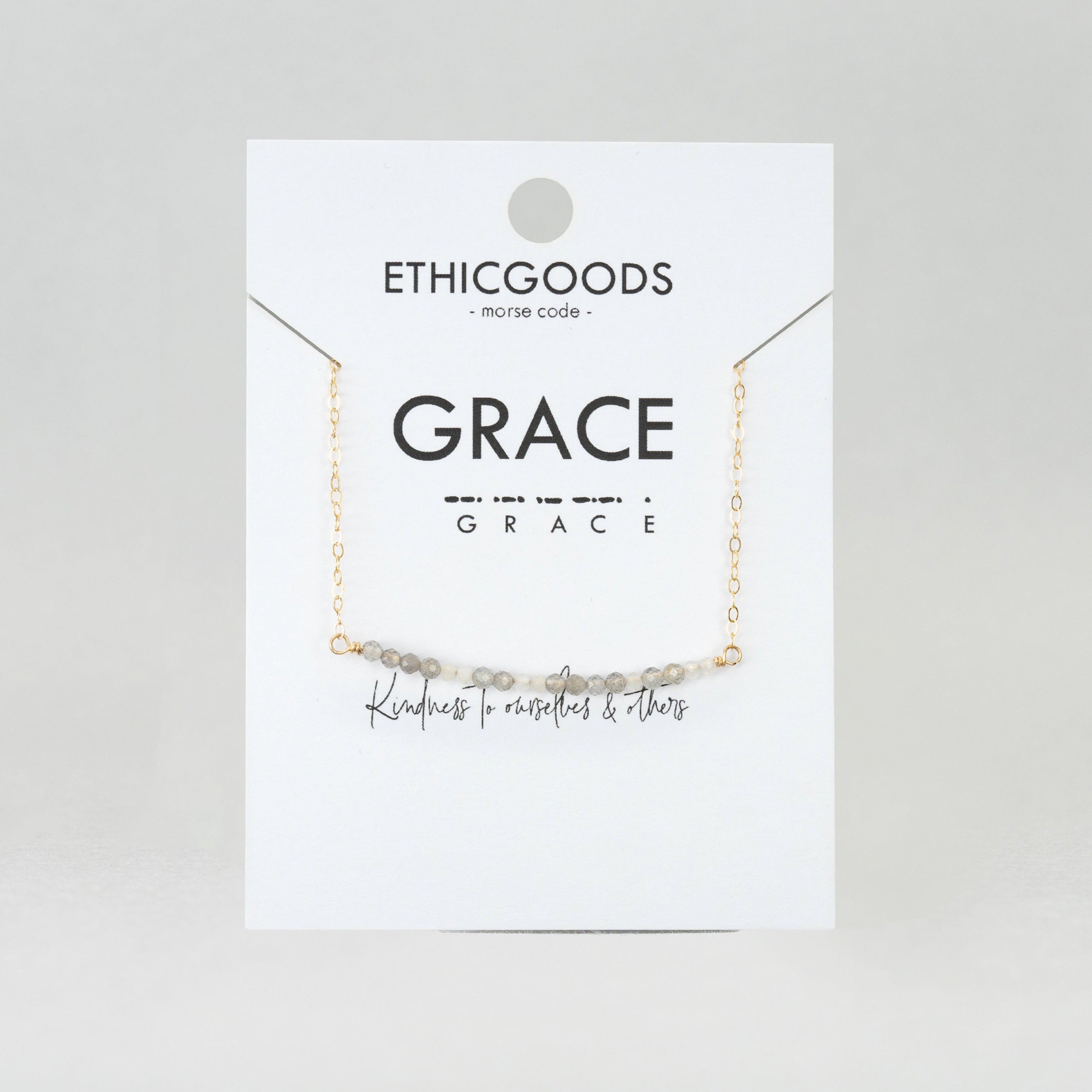 This 14k gorgeous, dainty gold-filled necklace spells GRACE in Morse Code. It’s perfect to wear every day layered with other necklaces or as a stand alone piece!