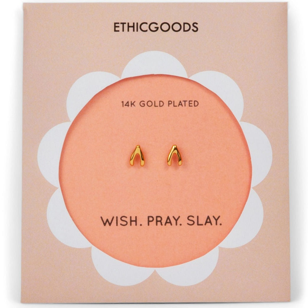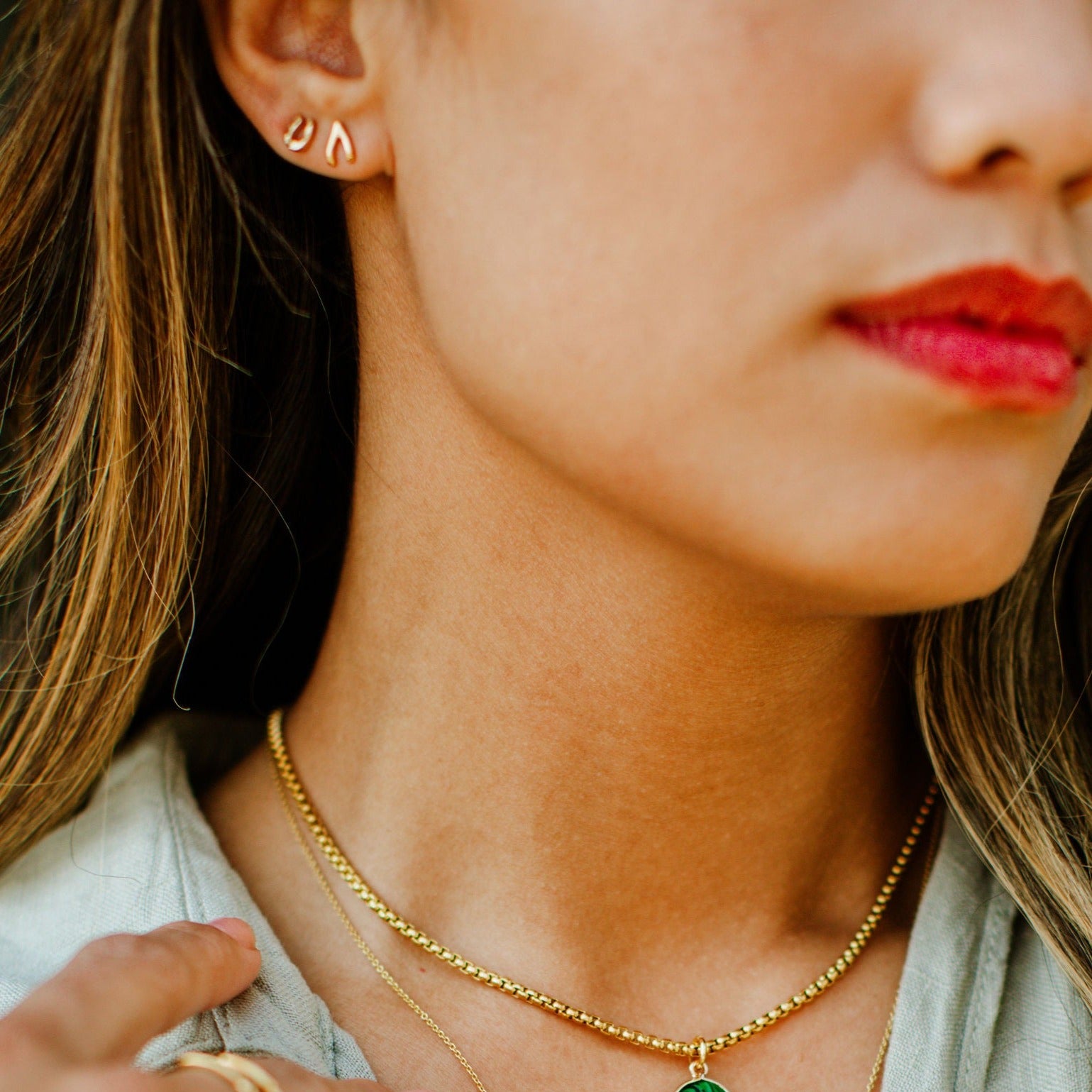 These earrings will bring you luck and style. Made of 14k gold-plated hypoallergenic material, these stud earrings are perfect for any occasion. Chic and elegant, they will surely make a statement and add a touch of glamour to your look. A perfect addition for the modern and fashion-forward.