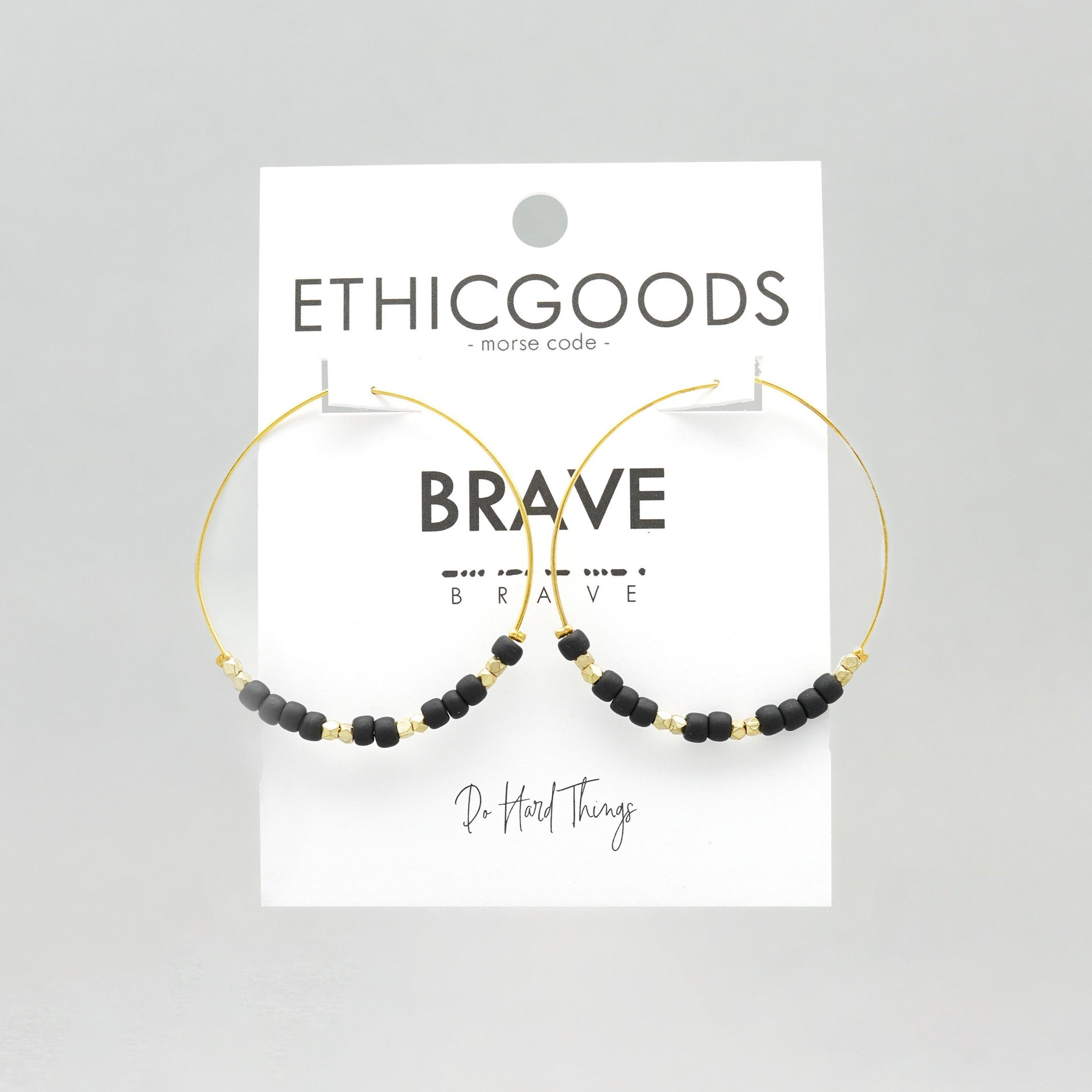 How to read your jewelry: A Morse Code dot is one bead and a dash is two beads in the alternating color. Start at the small gold spacer bead and follow the Morse Code spelling around the earrings!