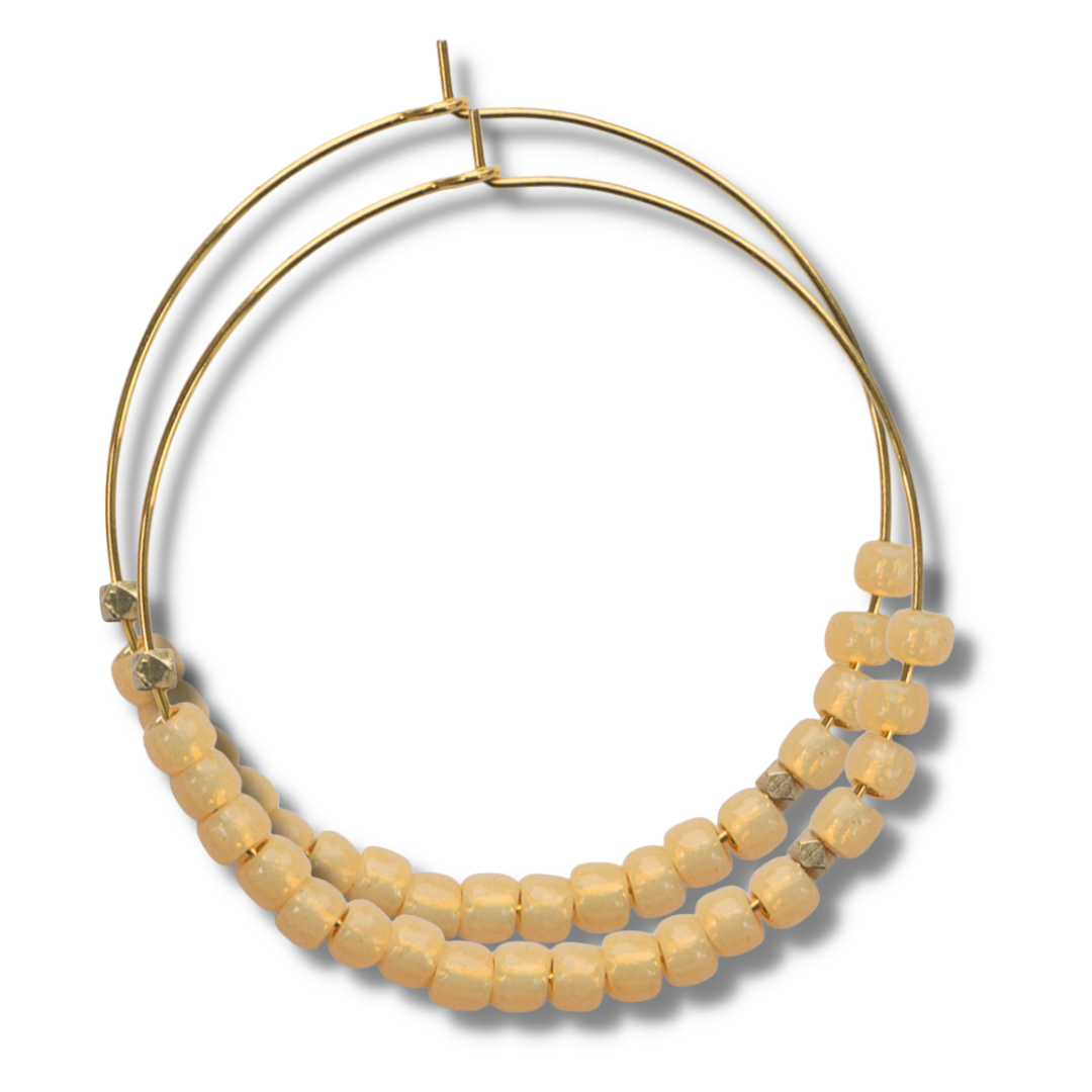 Beautiful gold hexagonal beads contrast with seed beads to make a gorgeous statement piece!