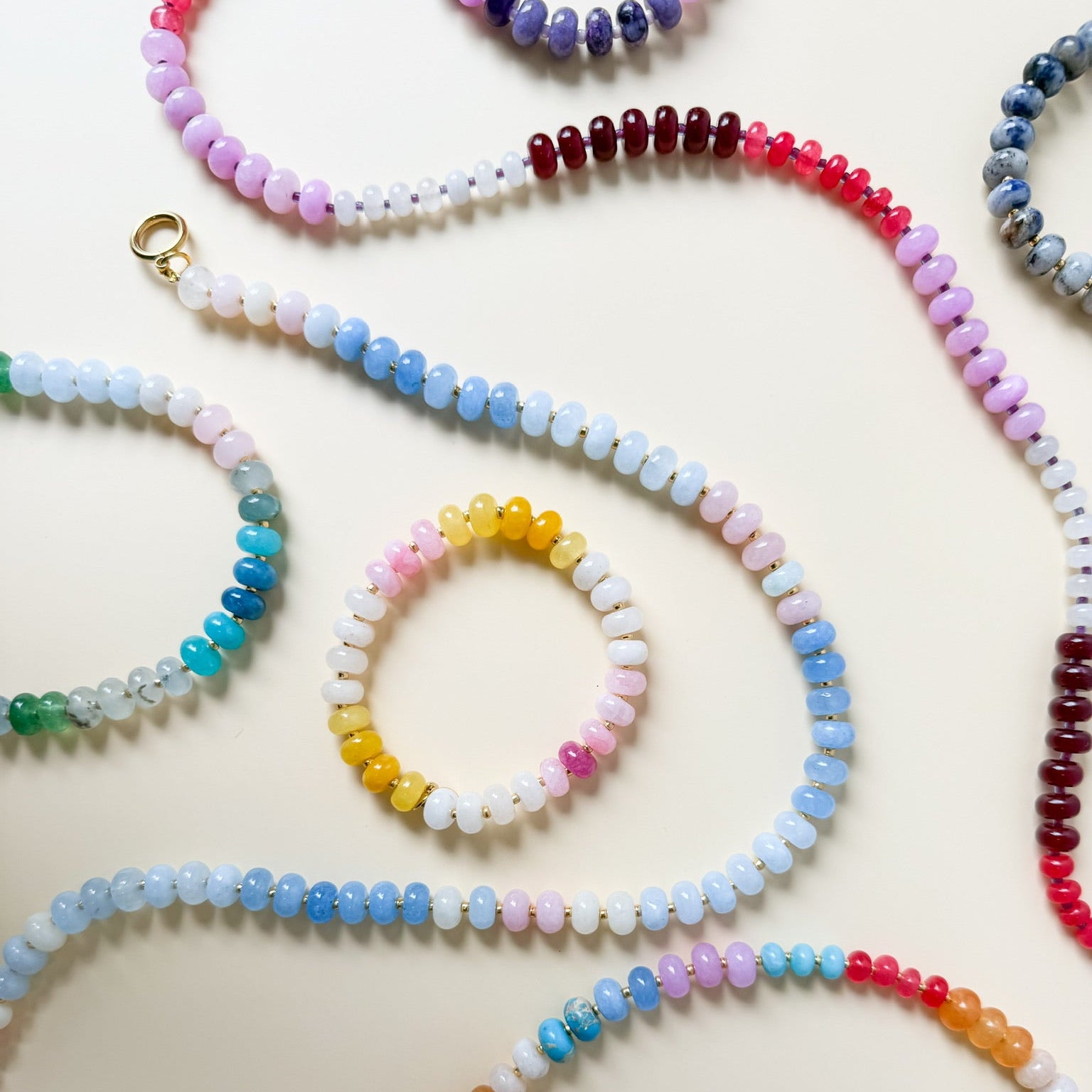This necklace features 8mm natural gemstones in a dreamy pink ombré gradient. From soft rose to deep mauve, this mix is feminine, modern, and full of heart. It’s subtle enough to wear every day, yet bold enough to make a statement.