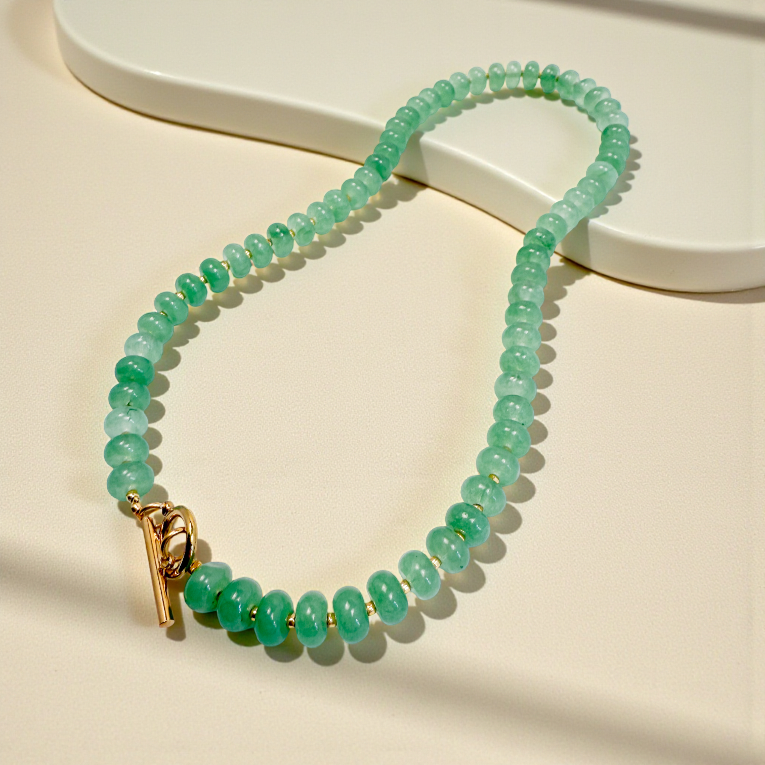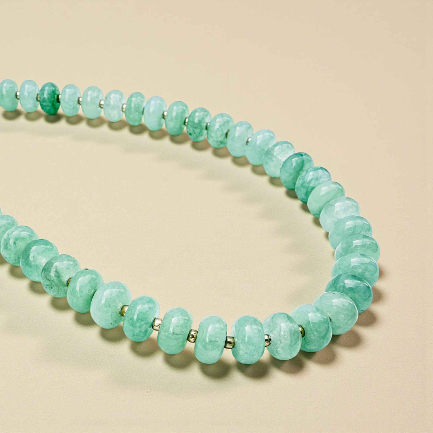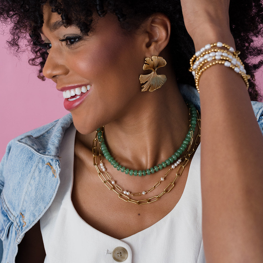 Give your jewelry collection a fresh twist with our handmade Bold Stone Necklace! The semi-precious green jade rondelle beads add a touch of elegance, while the bold 8mm stones bring a fun, stylish pop. Make a statement and effortlessly brighten up any outfit with this unique piece.