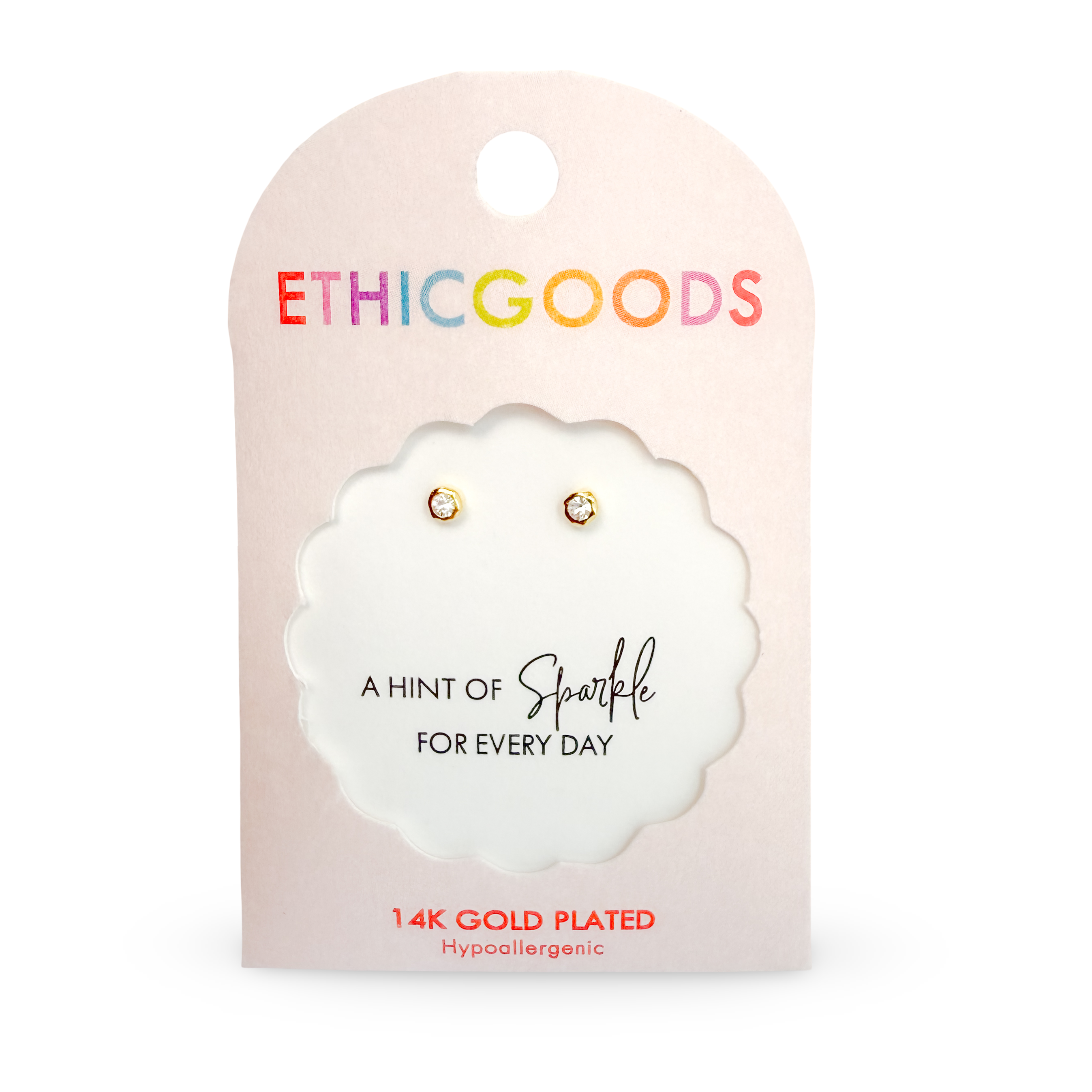 These Gemstone Bezel Tiny Stud Earrings feature a single bezel-set gemstone in a gold-plated setting. They’re minimal, elegant, and endlessly stackable. Wear them as your go-to everyday sparkle—subtle but stunning.