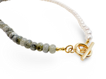 Mystical and moody, this necklace combines pearls with the shimmer and depth of labradorite. A striking blend of classic and cosmic.
