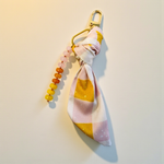 Pink Plaid Silk & Gemstone Bag Charm