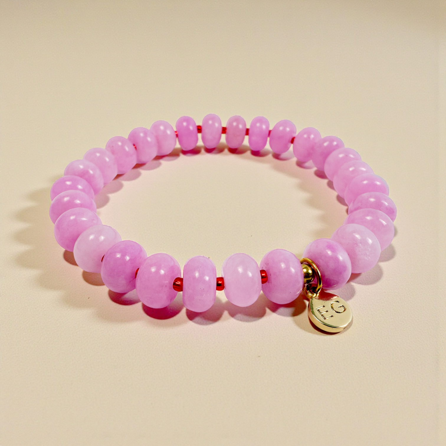 This bracelet features 8mm natural Rose Quartz rondelle beads, the stone of unconditional love. With its gentle blush tones, this piece is a feminine reminder of compassion, self-worth, and emotional balance. A beautiful way to wear your heart.
