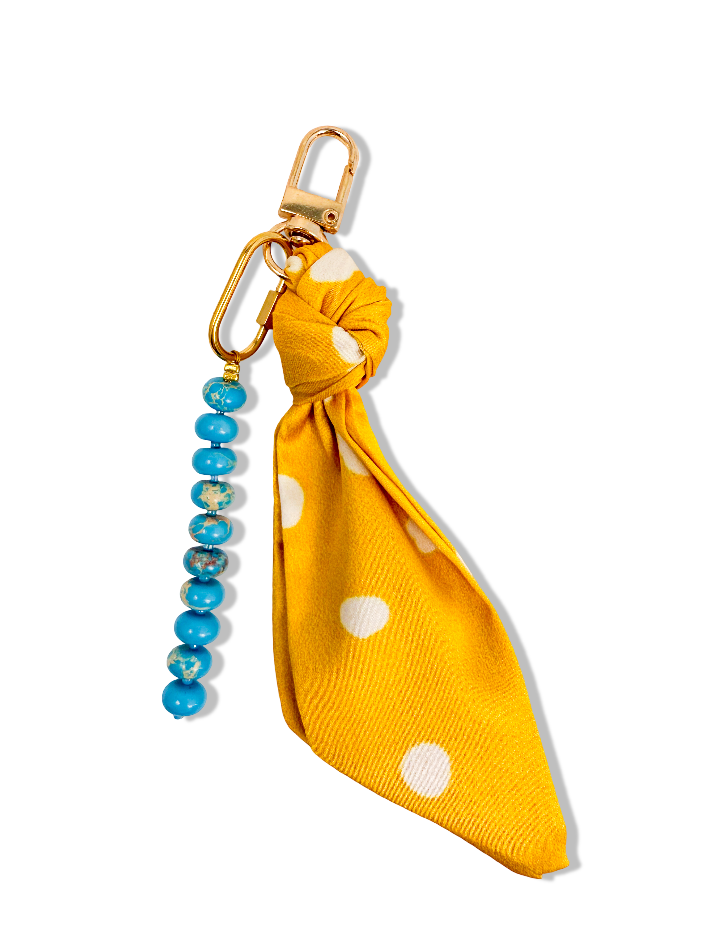 This charm features a black-and-white swiss dot silk with a classic gemstone pairing. It’s understated, chic, and totally timeless—perfect for those who like a subtle statement.