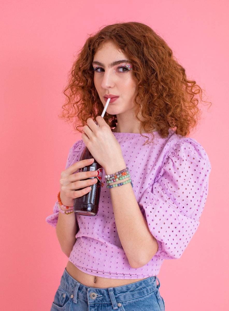 • Made with semi-precious stones, glass beads, elastic