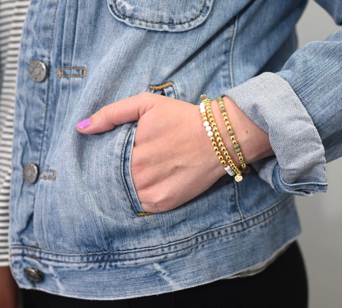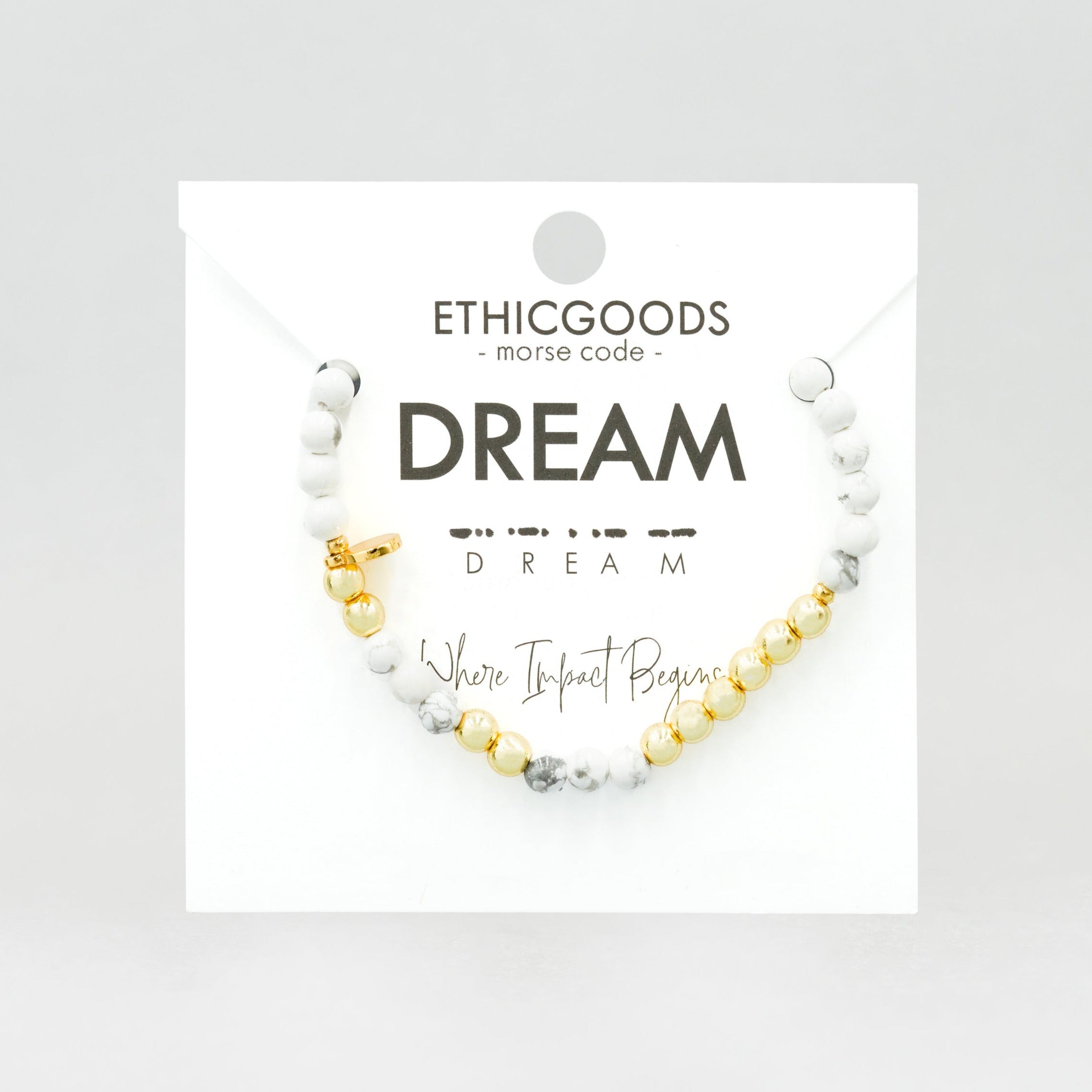 This best selling Morse Code bracelet is now available in a classic gold color combination! The gold hematite beads are known to help keep you grounded and calm.