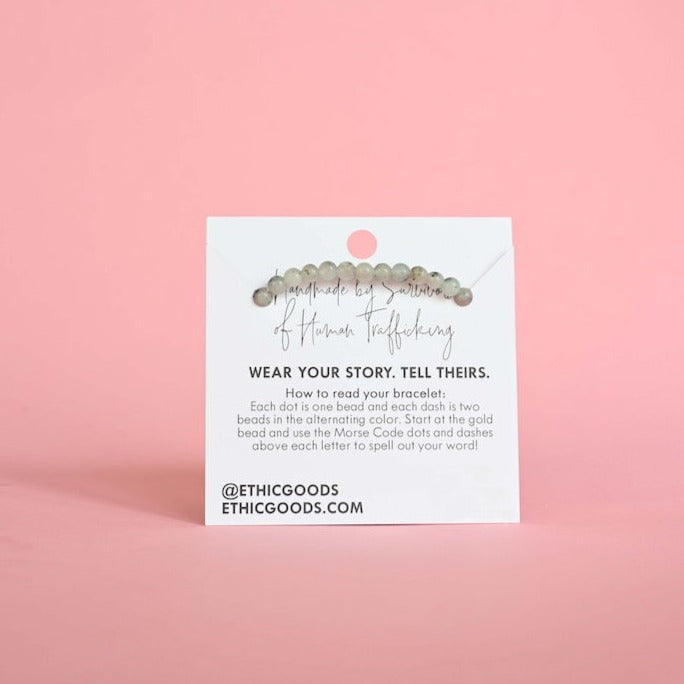 This bracelet looks great alone or stacked with your other favorite Morse Code or stone stacking bracelets!