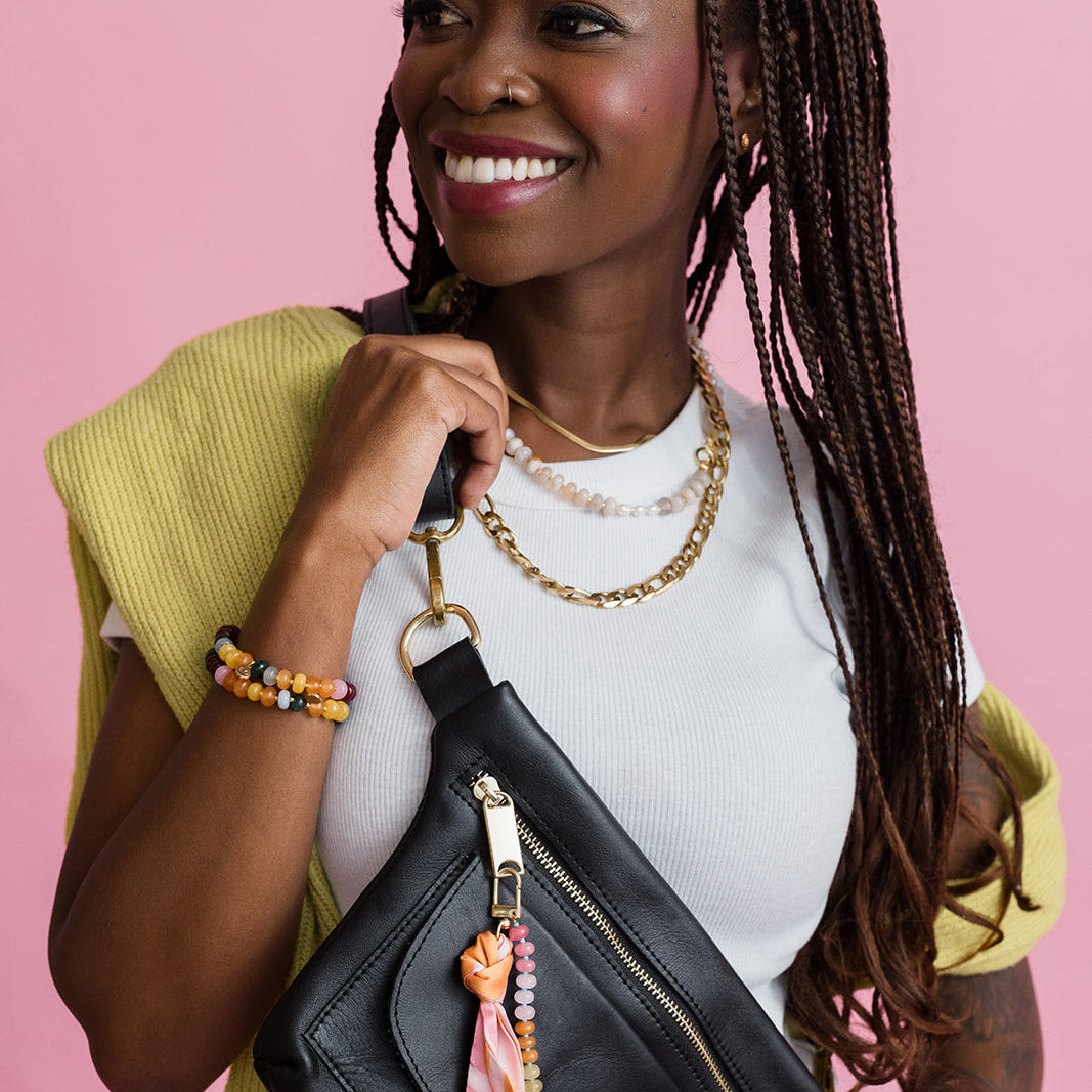 This bracelet features 8mm Harvest Rainbow gemstone rondelle beads in rich fall tones. Each bead brings warmth and vibrancy, making it a joyful and unique addition to any bracelet stack. A beautiful reminder to find beauty in the season you’re in.