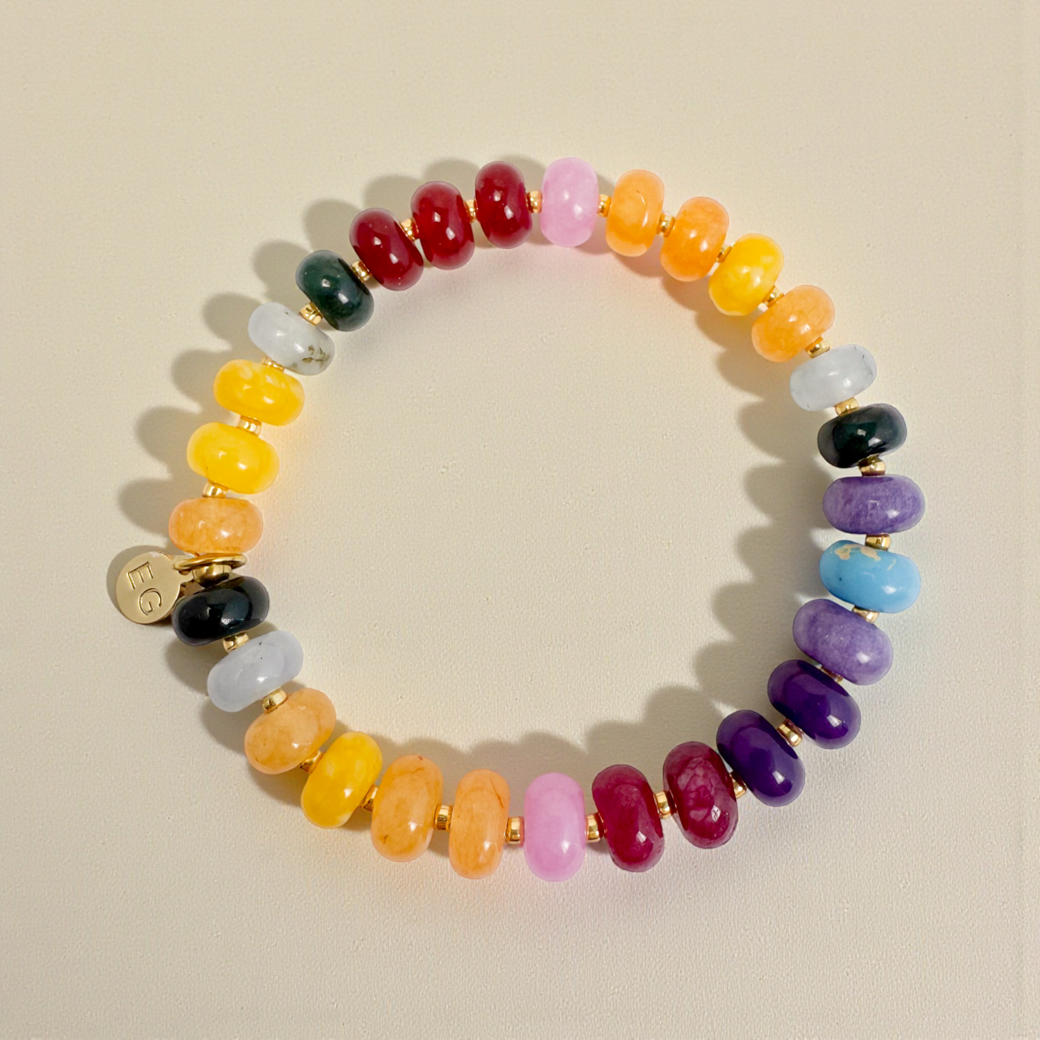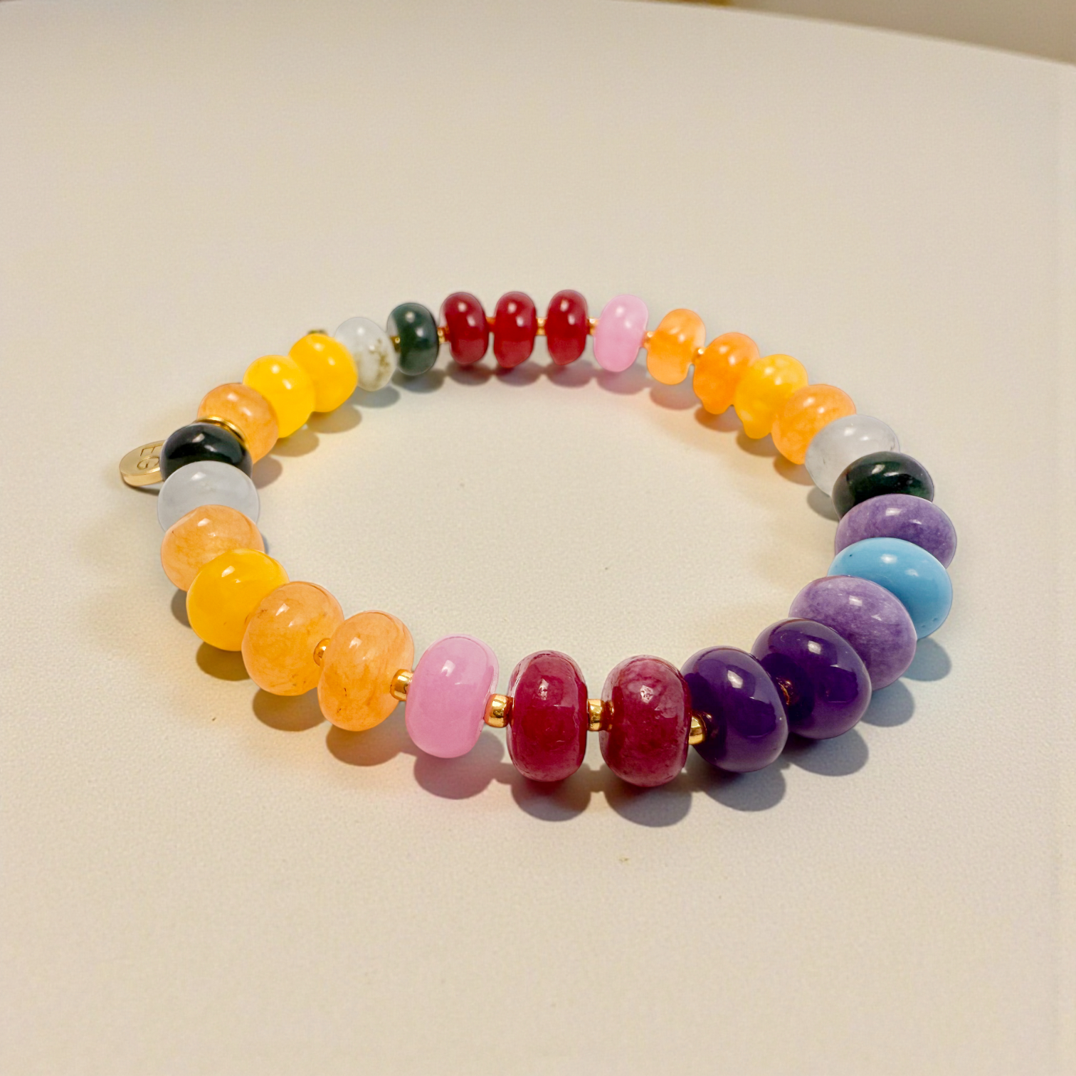 Harvest Rainbow Rondelle Gemstone Beaded Bracelet