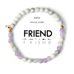Send a message of friendship with our MINI Morse Code Bracelet. This playful kids' size bracelet spells out "FRIEND" in dots and dashes, perfect for showing your BFF some love. Give the gift of a unique and fun accessory (and some secret communication skills!).