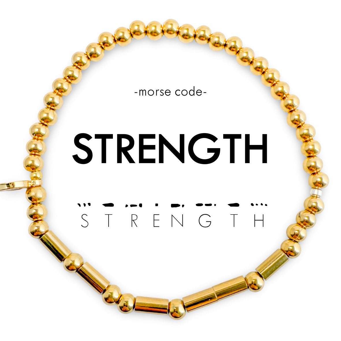 Morse Code Gold Waterproof Beaded Bracelet | STRENGTH
