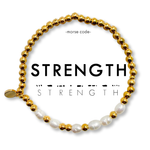 This bracelet spells STRENGTH in Morse Code using a timeless pairing of 4mm gold-plated beads and freshwater pearls—a bold yet graceful reminder of the resilience that lives within you.