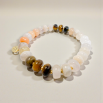 • Stone: Natural 8mm rondelle beads: Citrine, Tigers Eye, Clear Quartz, and Cloudy White Quartz