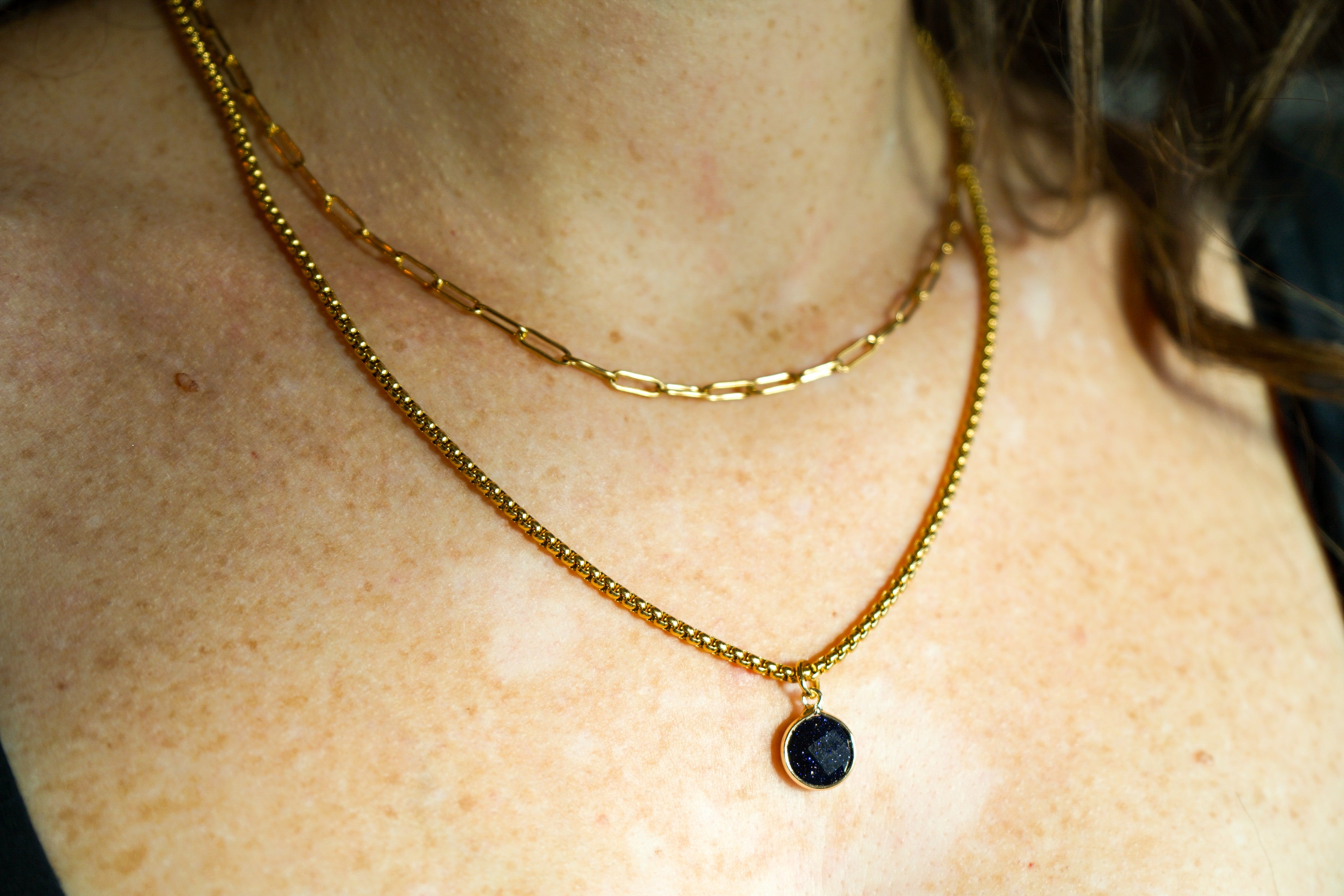 Classic Gold Stone Pendant Necklace Set - Paperclip Chain & Sandstone