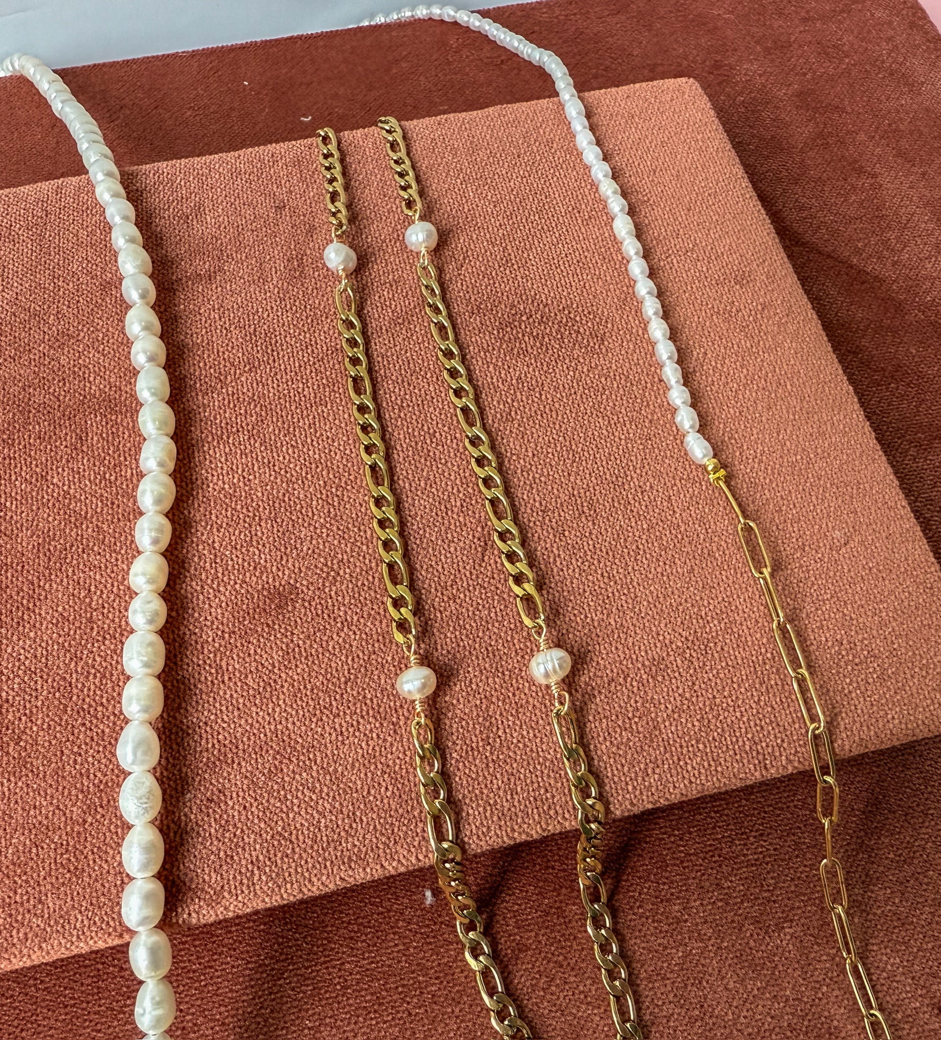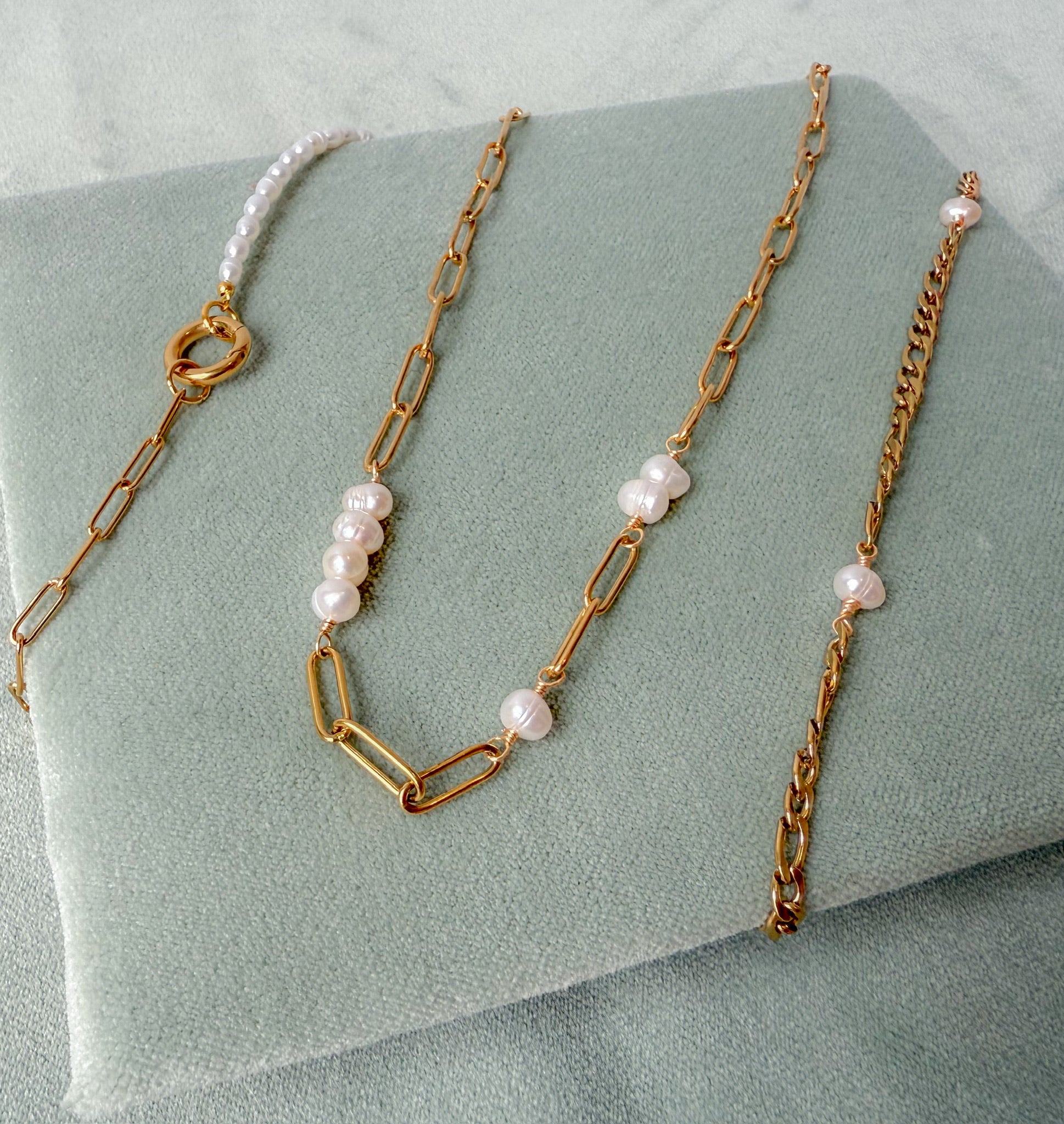 Rhythm Freshwater Pearl & Figaro Chain Gold Necklace