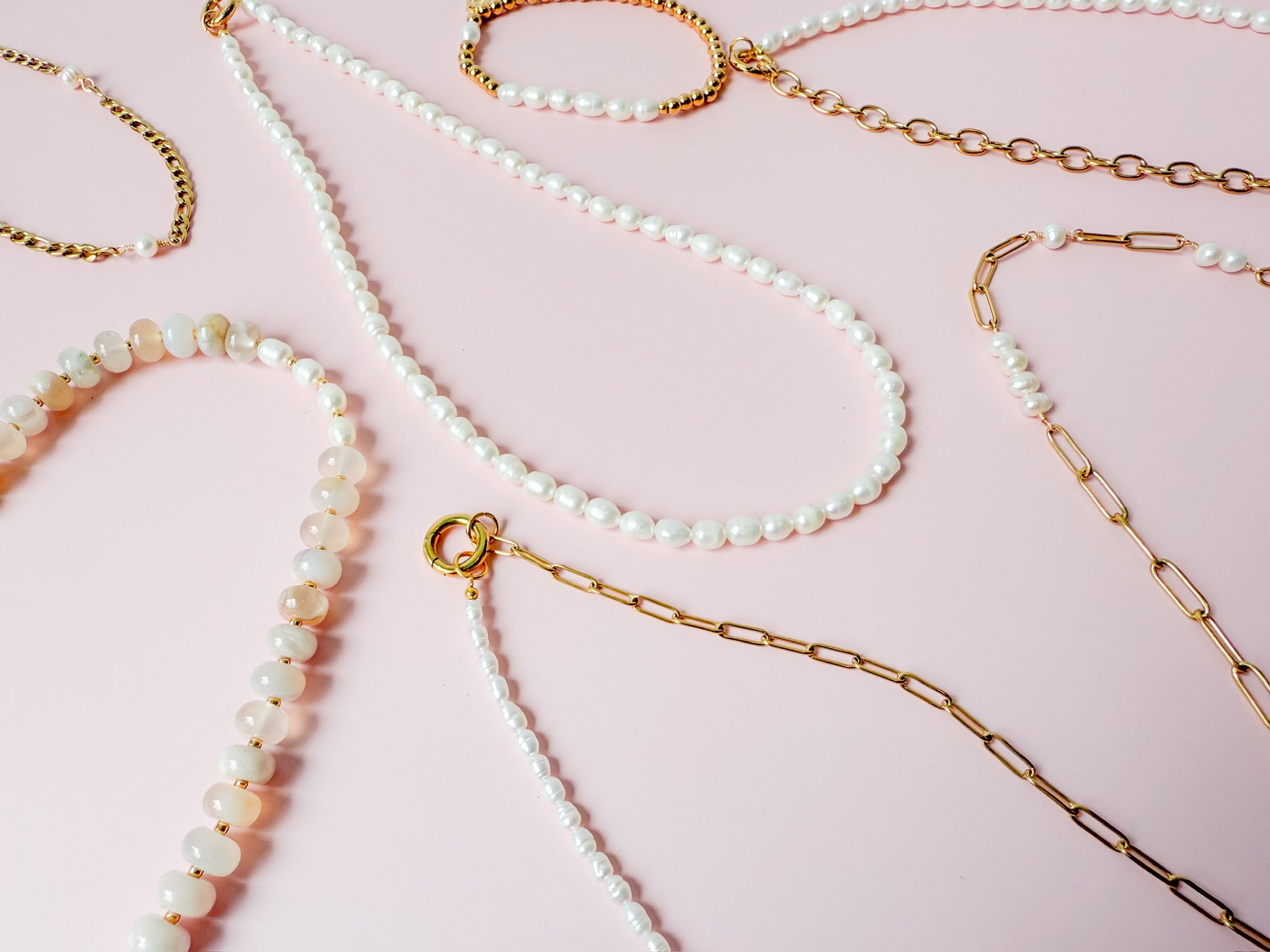 Morse Code Pearl & Waterproof Gold Paperclip Chain Necklace | LOVE