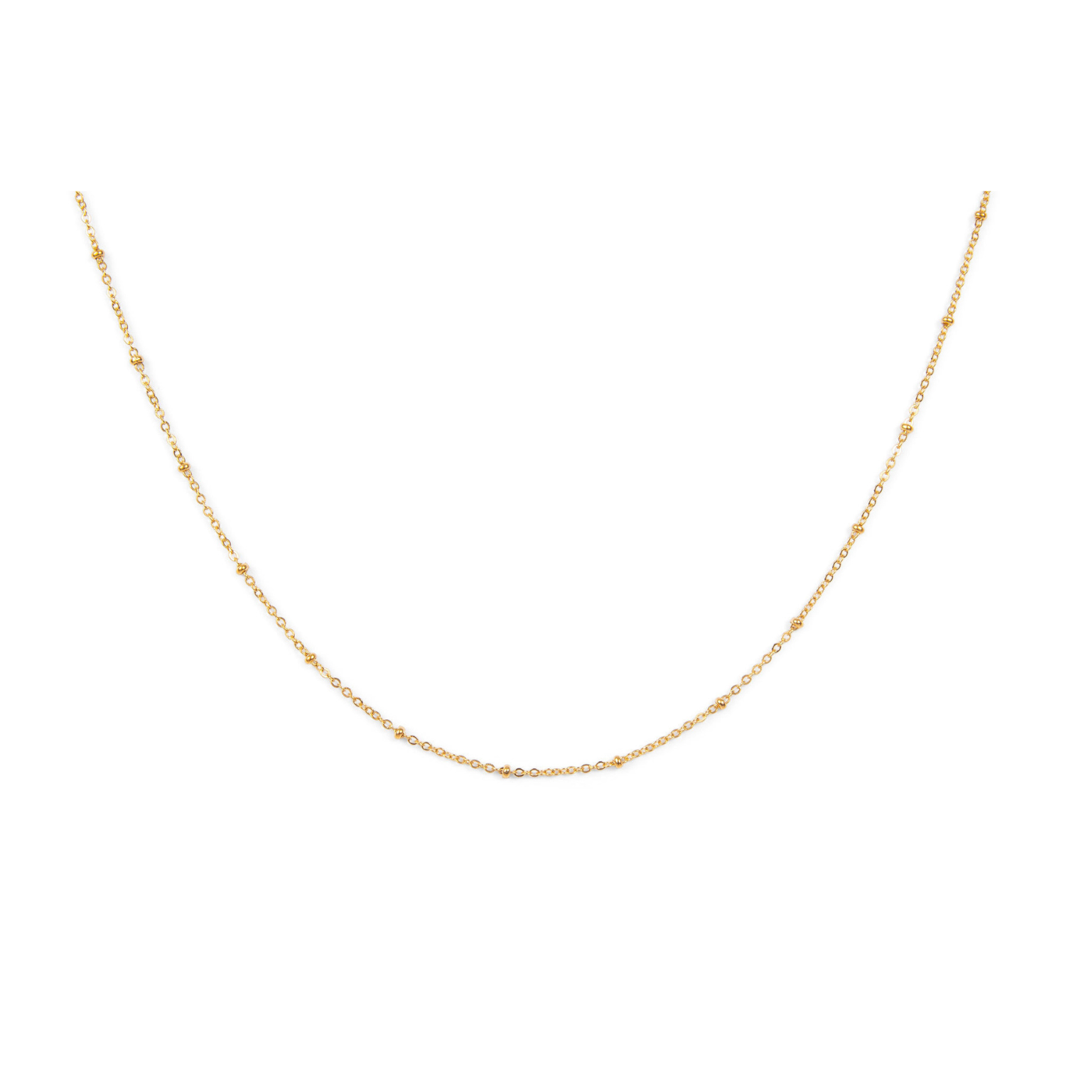 Add a touch of playfulness to your outfit with this satellite chain necklace. This pieces is both adorable and meaningful, while the 14k gold plating adds a touch of elegance. Handmade and waterproof, it's the perfect dainty layer for any occasion.
