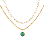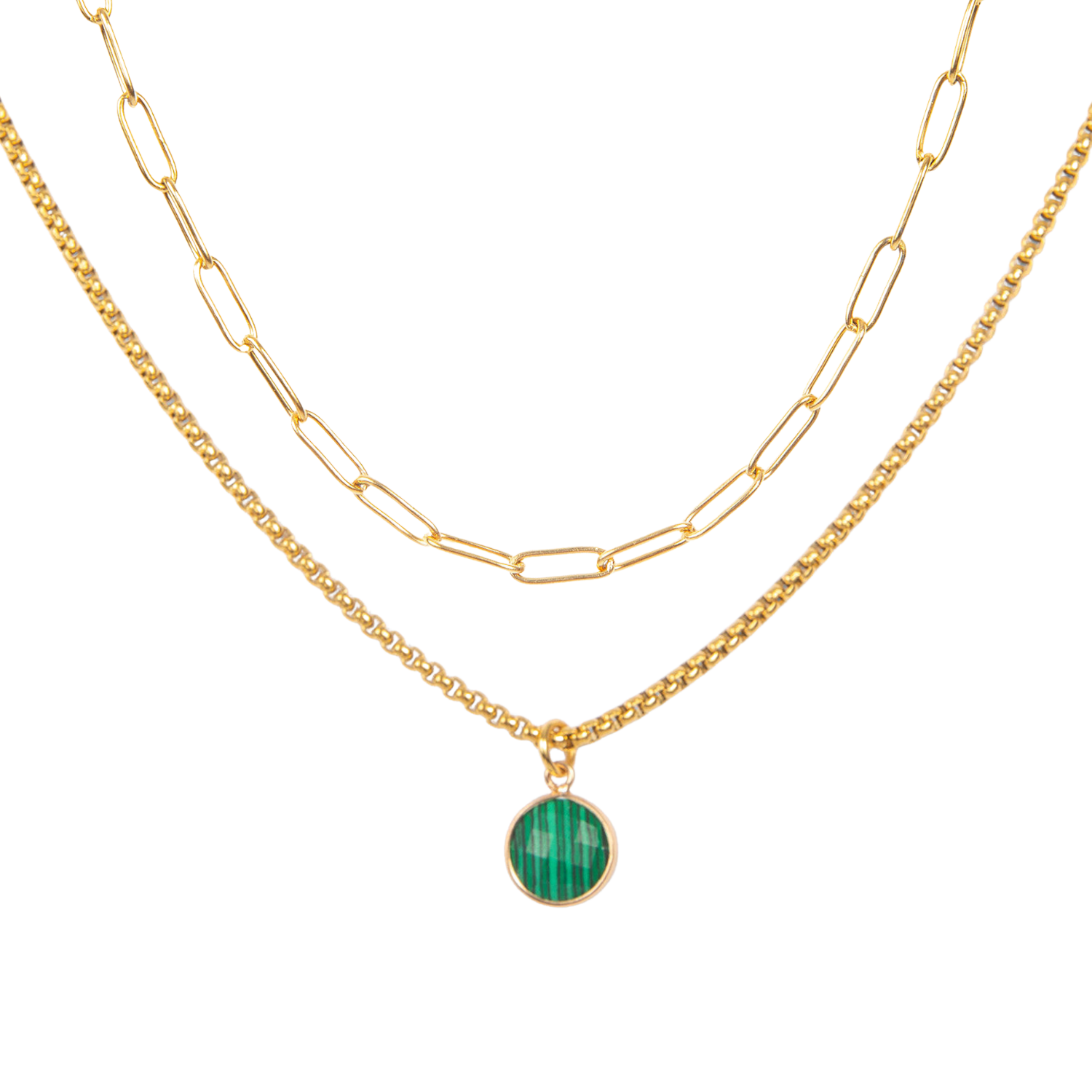 Paperclip Chain & Malachite Classic Gold Stone Pendant Necklace Set - Paperclip Chain & Malachite