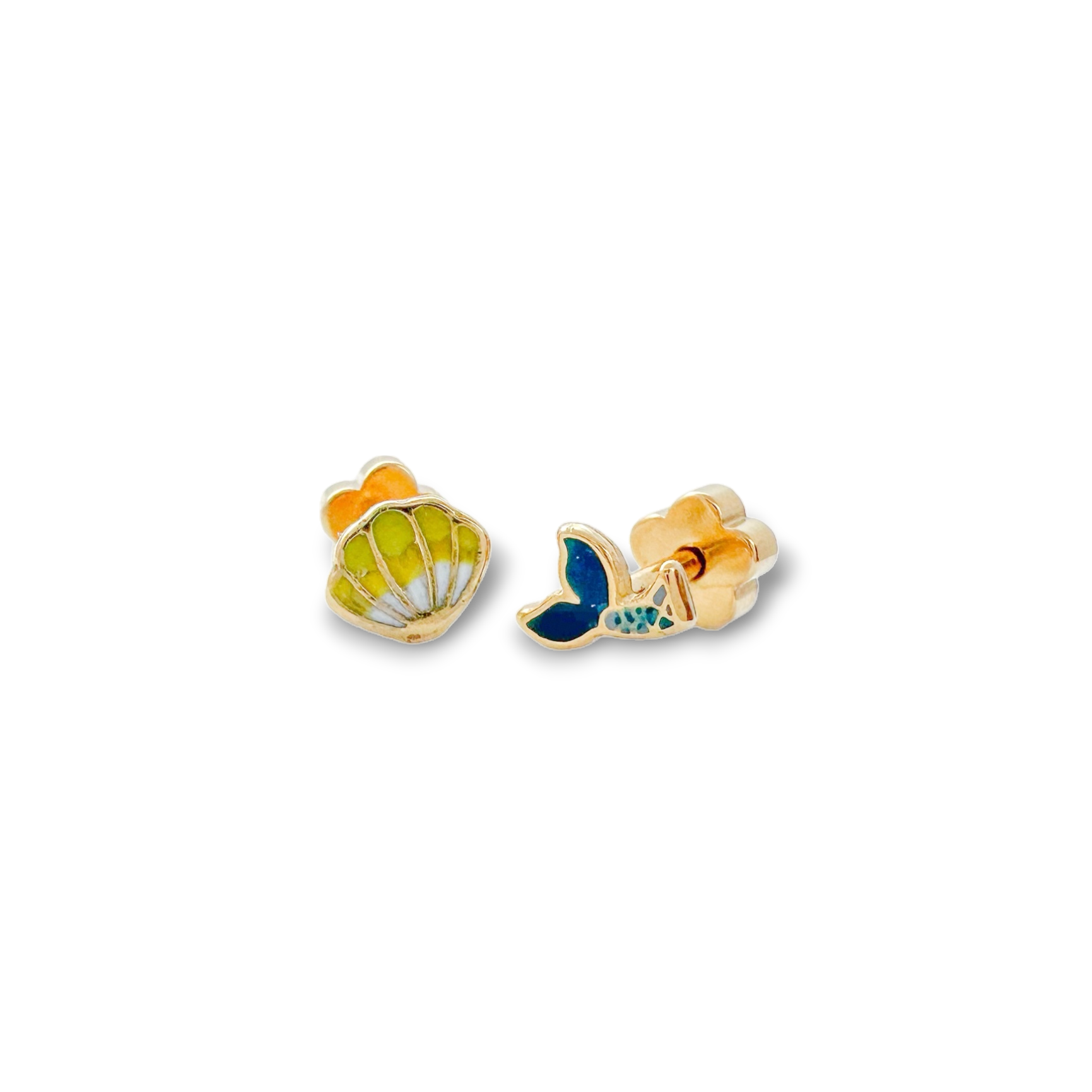 Mermaid Tail & Shell Tiny Stud Earrings