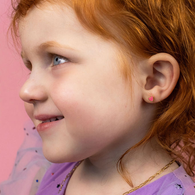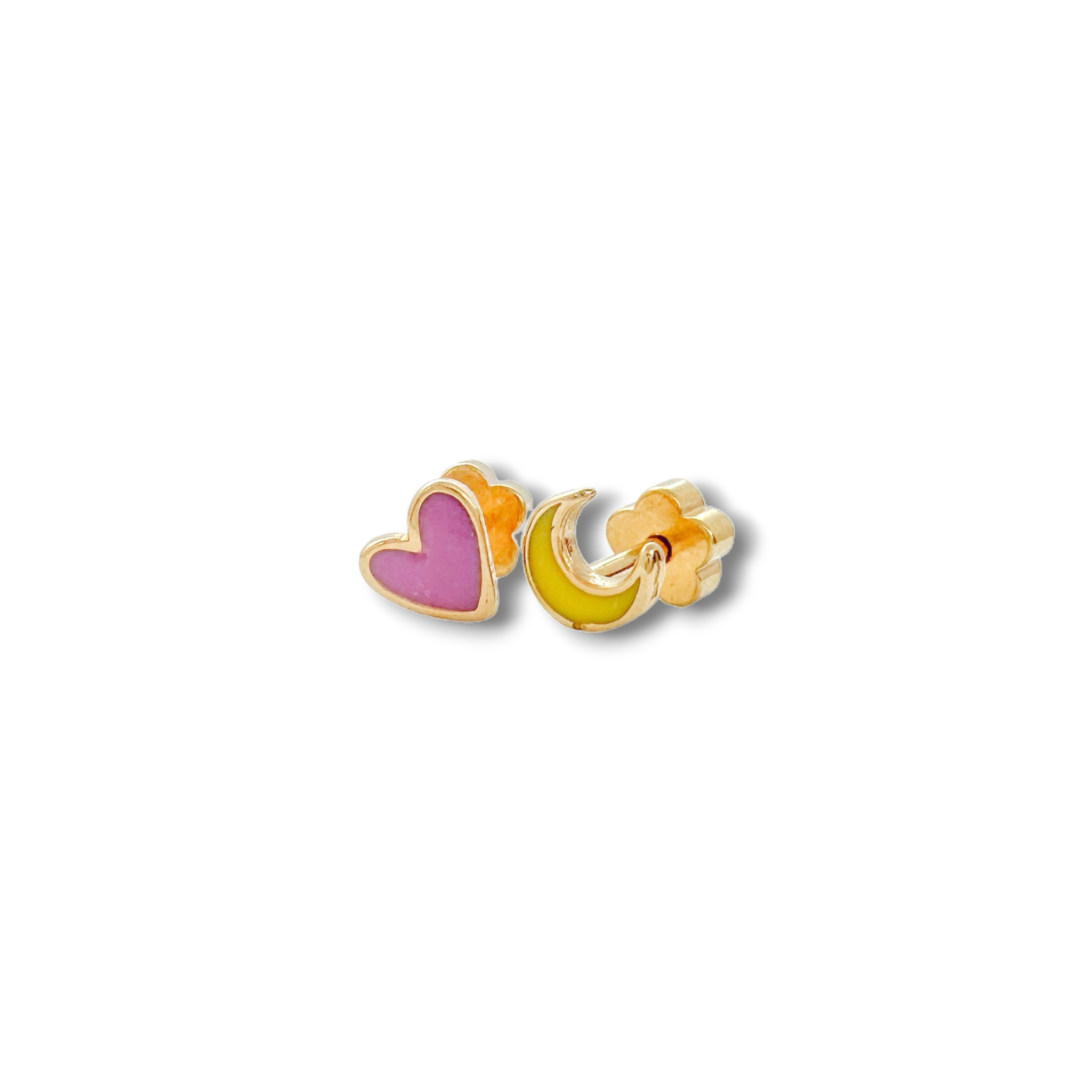 Love you to the moon and back! Blast off in style with these 14K Gold Plated Stainless Steel kids earrings. This complimentary set of a heart and moon is a sweet reminder of how much you are loved! Hypoallergenic screw-on posts with the sweetest flower designed flat-back, these earrings are a show stopper!
