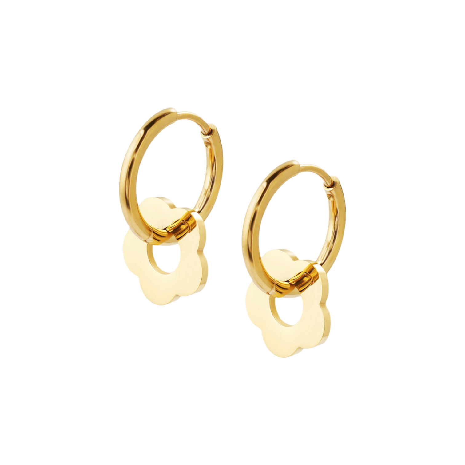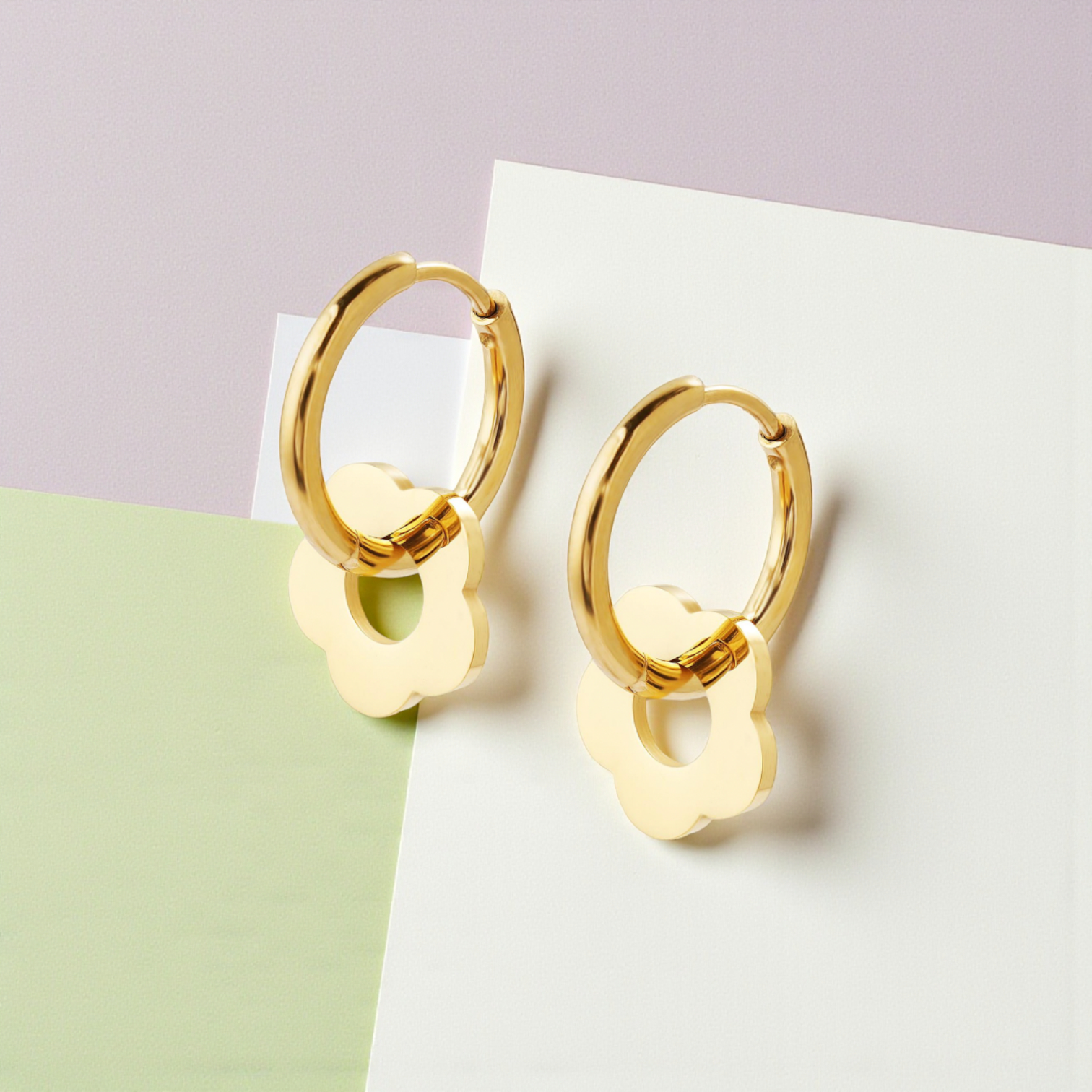 These delightful flower hoop earrings bring a playful pop of charm to any look. Crafted with 18K gold plating and designed with hypoallergenic materials, they're perfect for sensitive ears without sacrificing style. The adorable floral detail adds a whimsical touch that works beautifully for everyday wear or special occasions. Lightweight and comfortable, these petite dangles are your new go-to accessory for effortless elegance with personality.