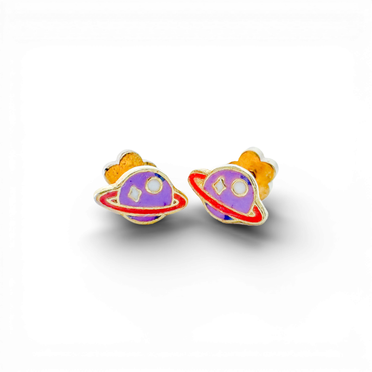 These Saturn Tiny Stud Earrings are out of this world cute! Made with 14K Gold Plated material, they are hypoallergenic and have a flat back with a screw on design for easy wear. Show off your fun side with these unique earrings.