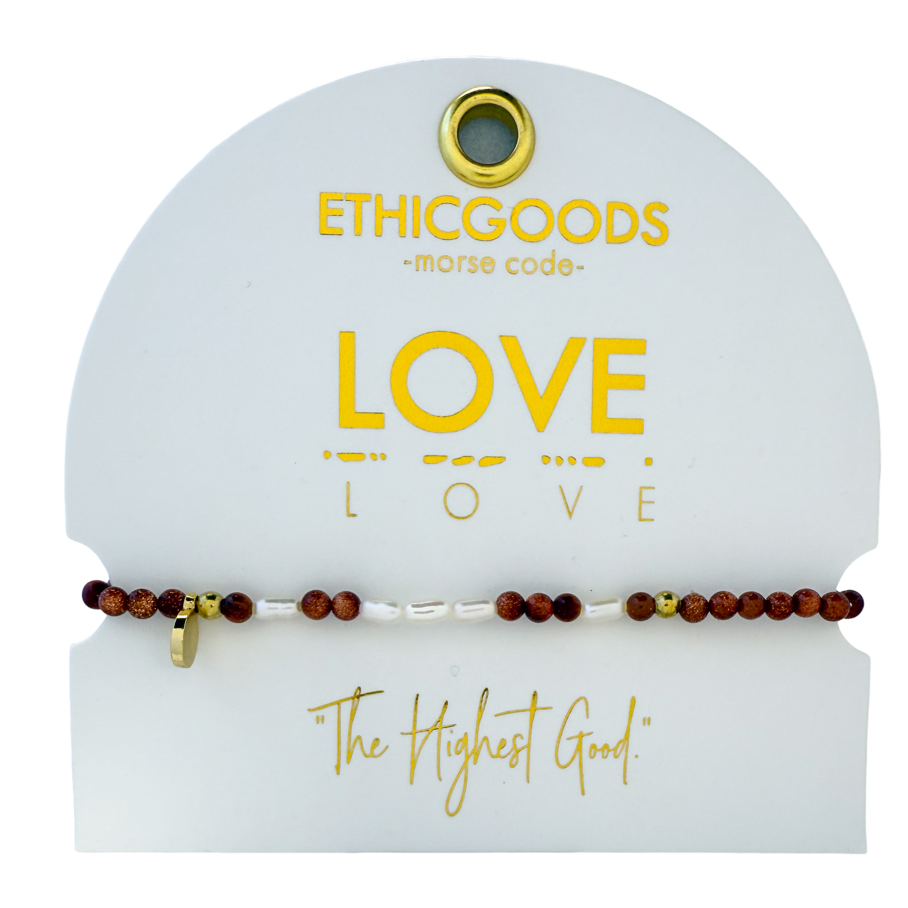 This bracelet spells LOVE in Morse Code with 3mm semi-precious stones and freshwater pearls. Simple and meaningful, it celebrates love in all its forms — romantic, familial, or self-love.