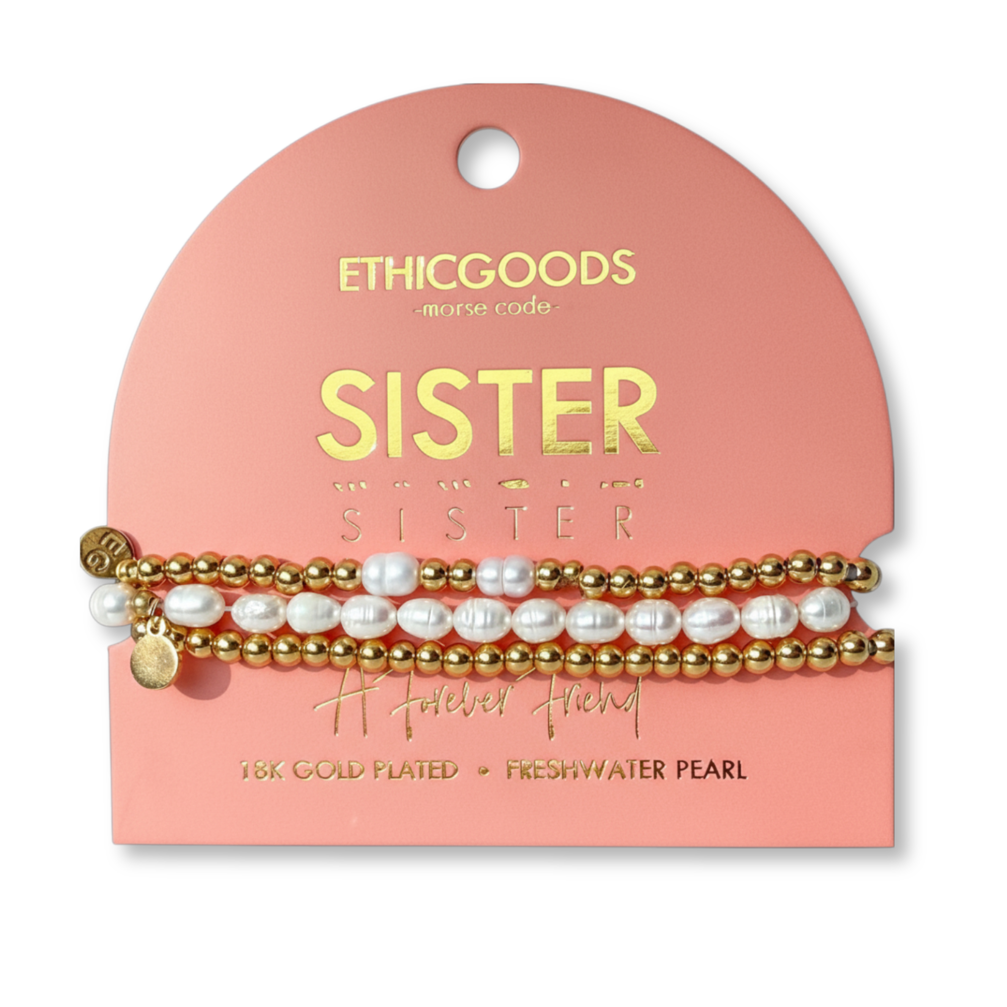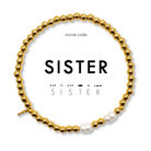 Morse Code Pearl & Gold Waterproof Beaded Bracelet Stacking Set | SISTER