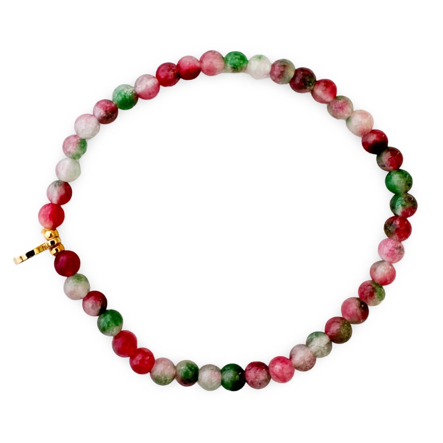 Our Signature Stone Stacking Bracelets are made with beautiful semi-precious stones chosen for their natural beauty and energy. This Watermelon Jasper bracelet adds unique color and texture to your stack—perfect for balancing bold pieces or wearing solo for a touch of everyday meaning.