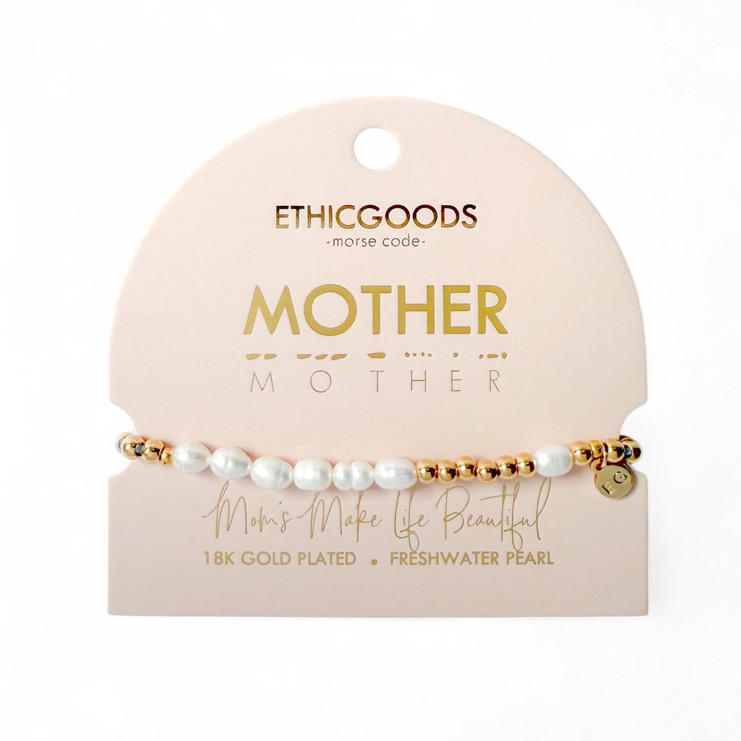 Morse Code Pearl & Gold Waterproof Beaded Bracelet | MOTHER