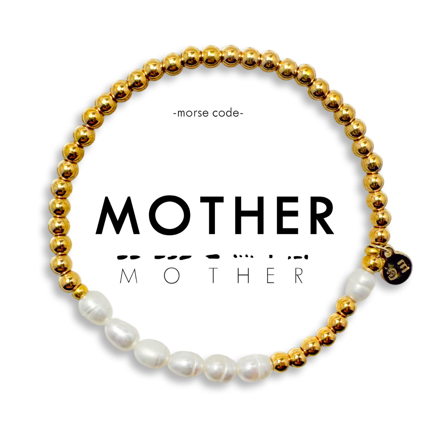 This bracelet spells MOTHER in Morse Code using 4mm 18k gold-plated beads and freshwater pearls. It’s a heartfelt tribute to the women who hold it all together. Whether it’s for a new mom, your own mother, or a gift to yourself, this bracelet is a beautiful symbol of unconditional love and quiet strength. Crafted to be waterproof, sweatproof, and tarnish-resistant.