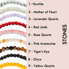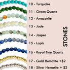 - Choose your stone colors. Your primary stone will be the main color of your bracelet. Note - stones are natural and can have slight color variations.