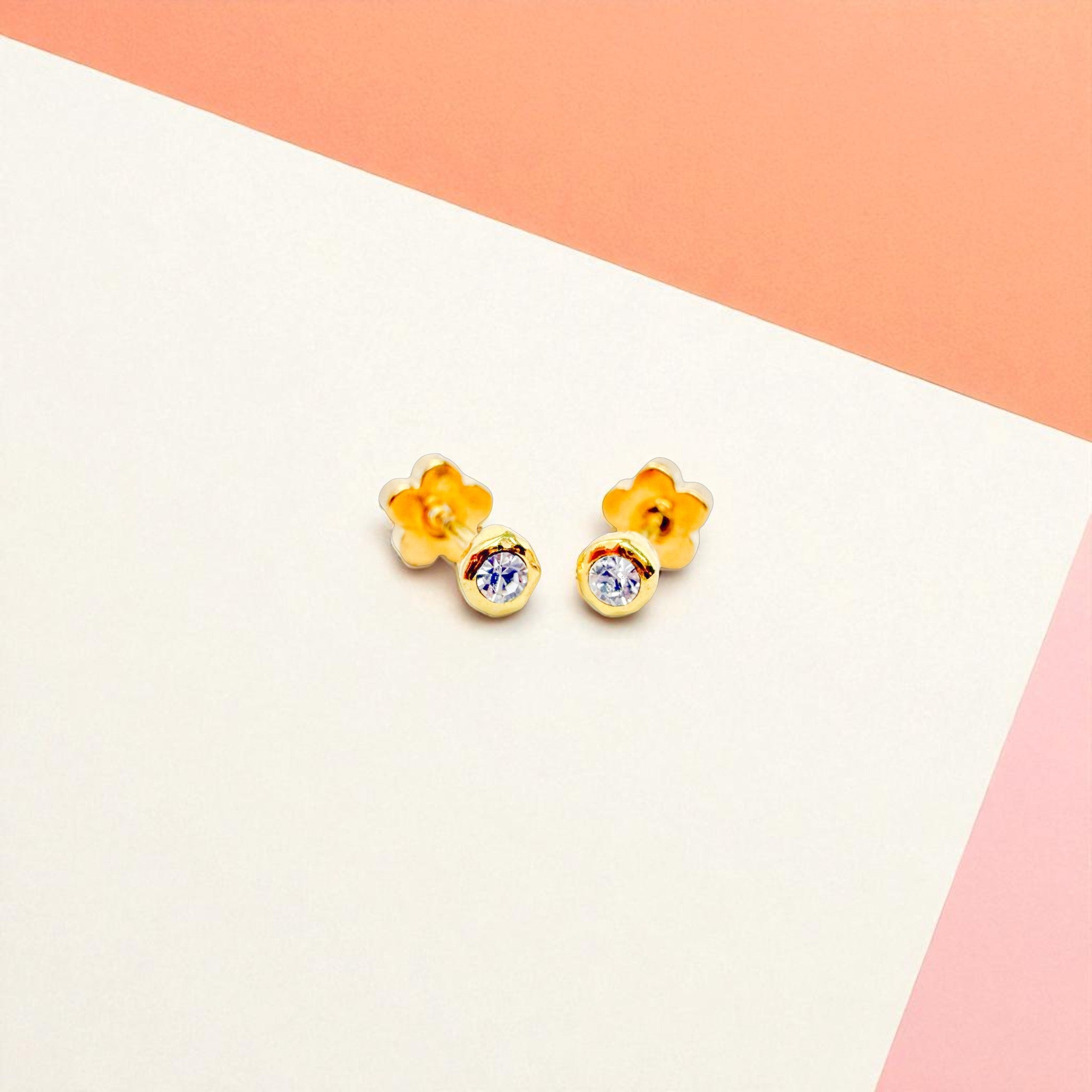 These Gemstone Bezel Tiny Stud Earrings feature a single bezel-set gemstone in a gold-plated setting. They’re minimal, elegant, and endlessly stackable. Wear them as your go-to everyday sparkle—subtle but stunning.