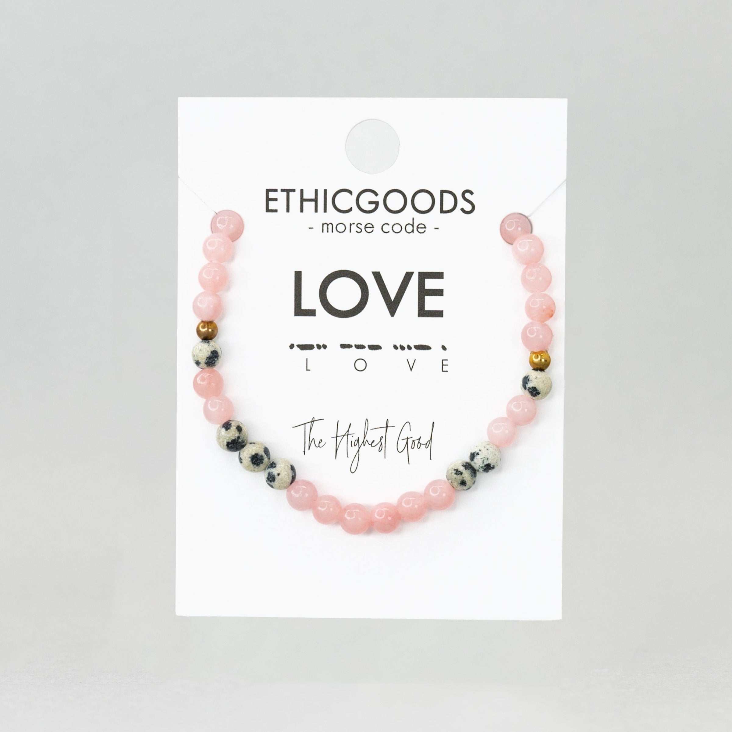 How to read your bracelet: A Morse Code dot is one bead and a dash is two beads in the alternating color. Start at the small gold spacer bead and follow the Morse Code spelling around the bracelet!