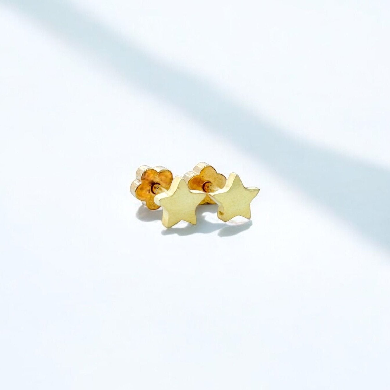 Add some star power to your look with these 14K Gold plated tiny stud earrings. Hypoallergenic and with a flat back, these playful earrings are perfect for both kids and kids at heart. Screw on for easy wear. Shine like the star you are!