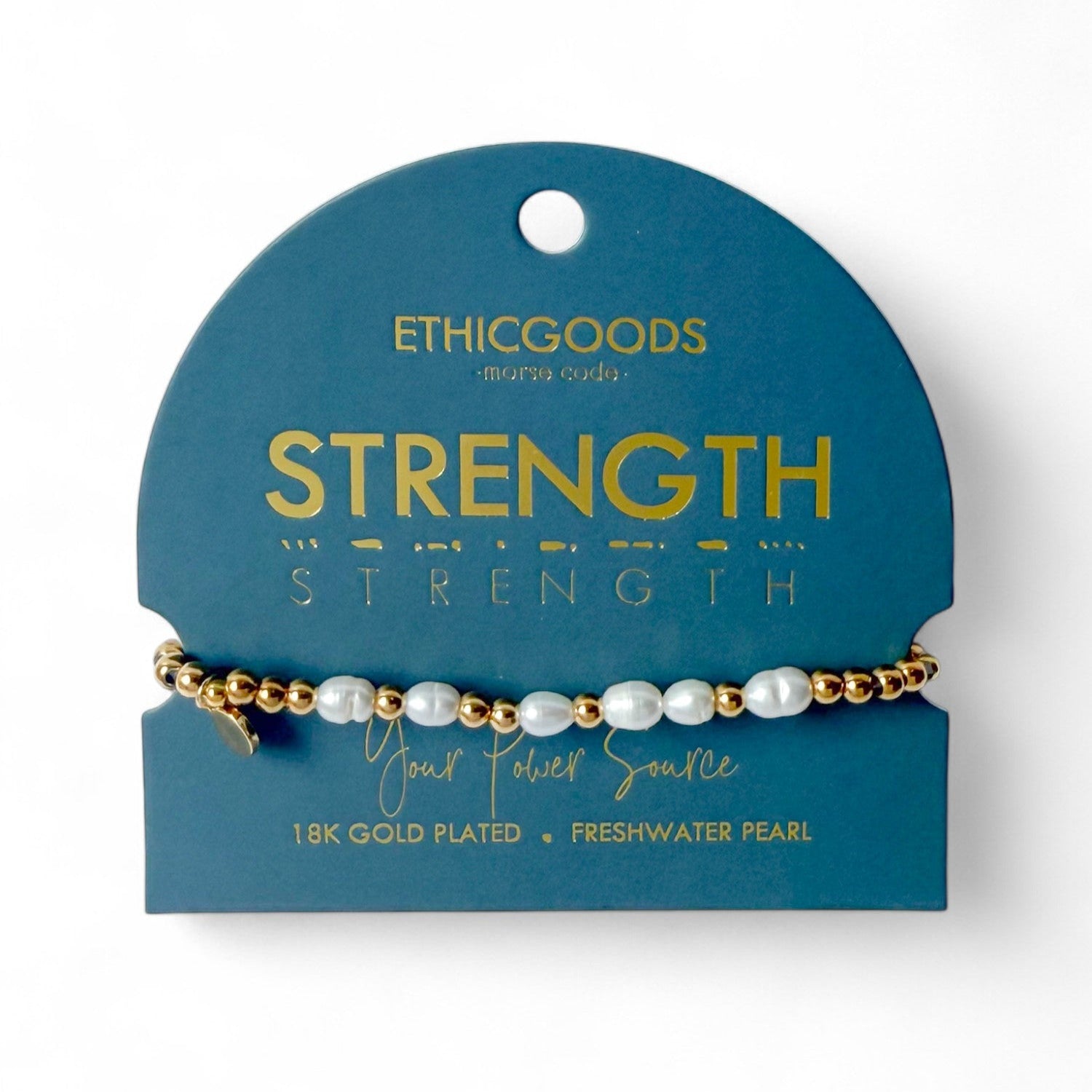 This bracelet spells STRENGTH in Morse Code using a timeless pairing of 4mm gold-plated beads and freshwater pearls—a bold yet graceful reminder of the resilience that lives within you.