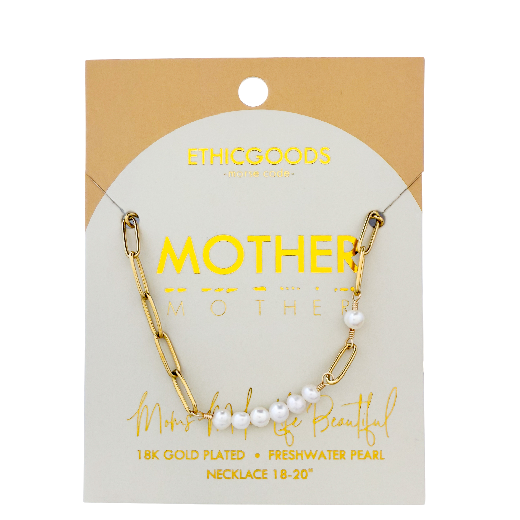 This necklace spells MOTHER in Morse Code with a refined mix of freshwater pearls and a waterproof gold paperclip chain. A tribute to the women who nurture, guide, and love deeply—often in quiet, extraordinary ways. Part of our Harmony Collection and Morse Code Collection, this piece balances grace and meaning with everyday wearability. Crafted with waterproof, sweatproof, and tarnish-resistant gold plating over stainless steel.