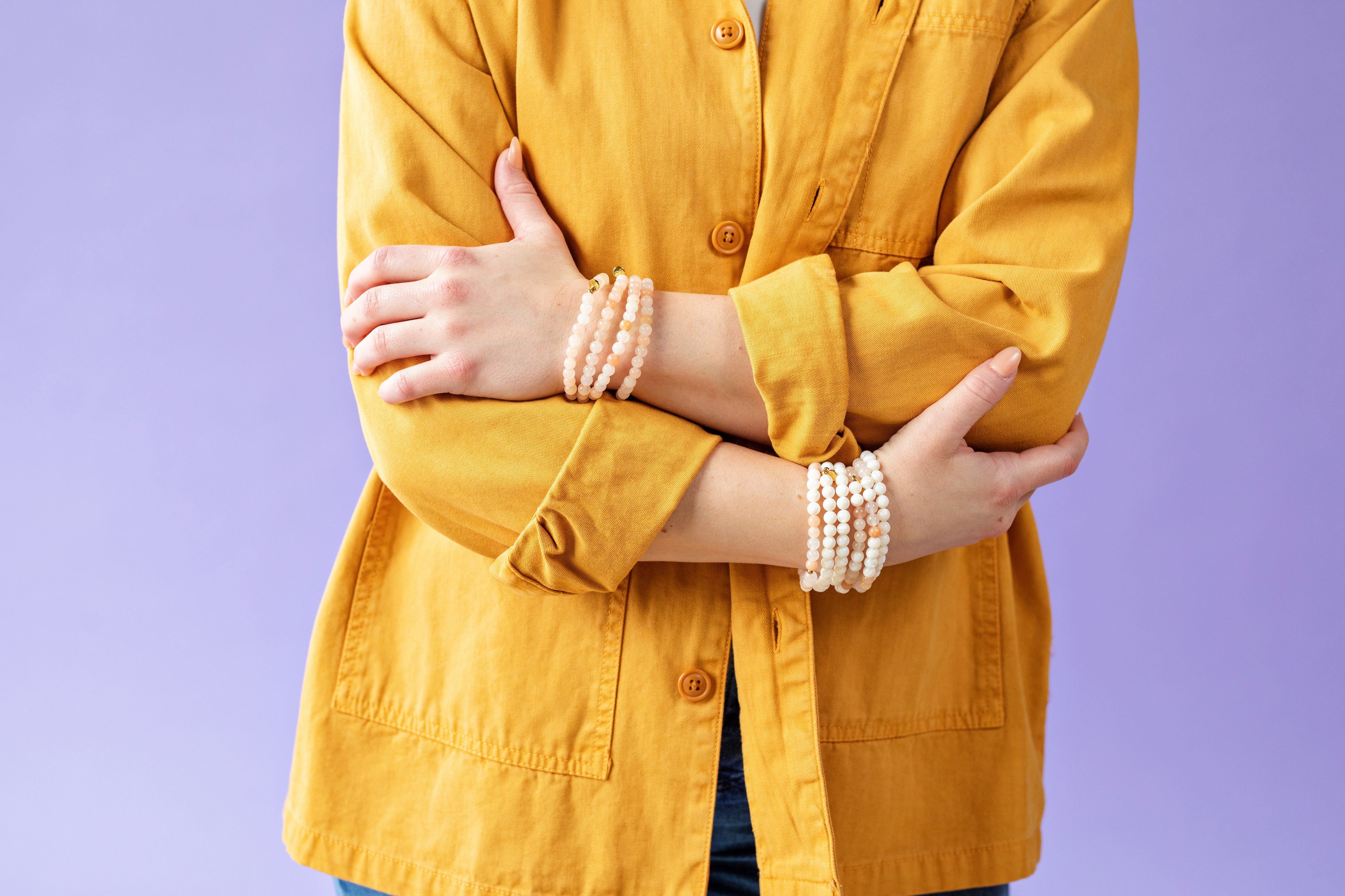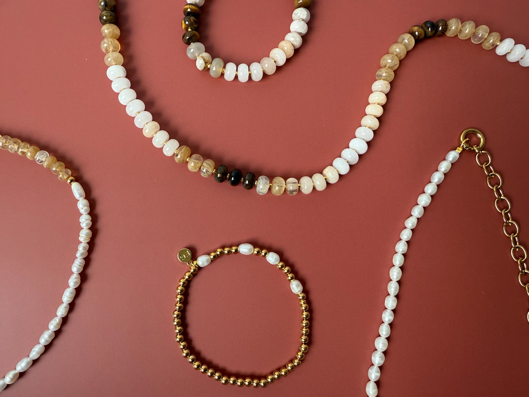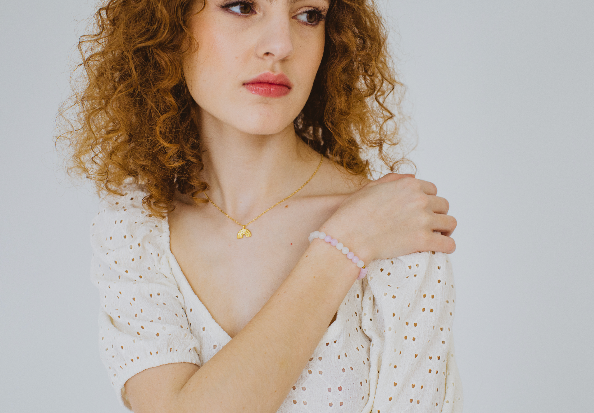 Morse Code Pearl & Gold Waterproof Beaded Bracelet | LOVE