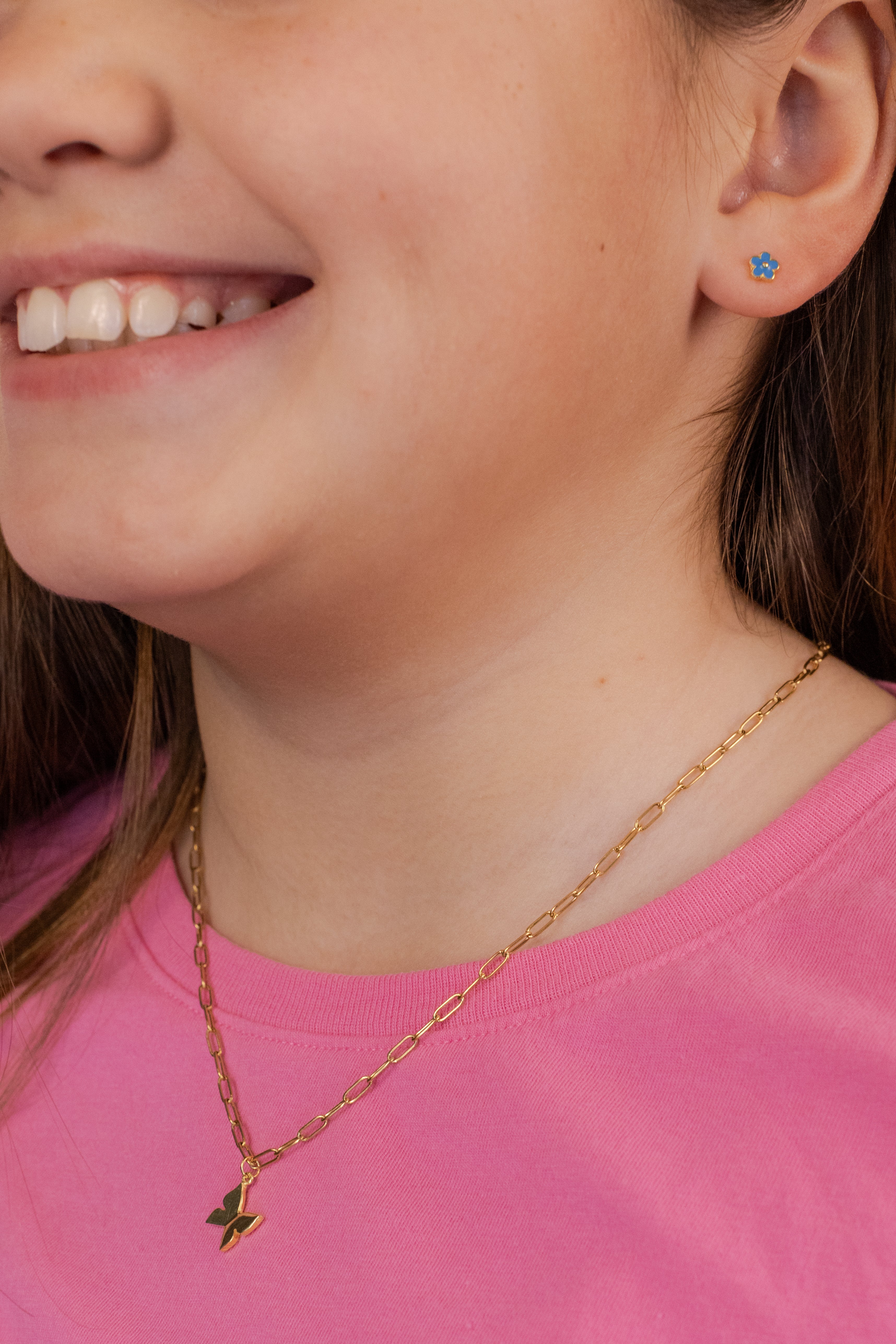 BUTTERFLY & BLUE FLOWERS | Kids Necklace & Earrings Set