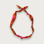 Brown & Pink Flowers Silk Scarf Necklace