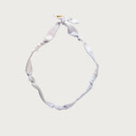 This scarf necklace features subtle lavender stripes in a timeless, graphic design. It’s modern, chic, and versatile—an effortless statement maker that pairs with everything.