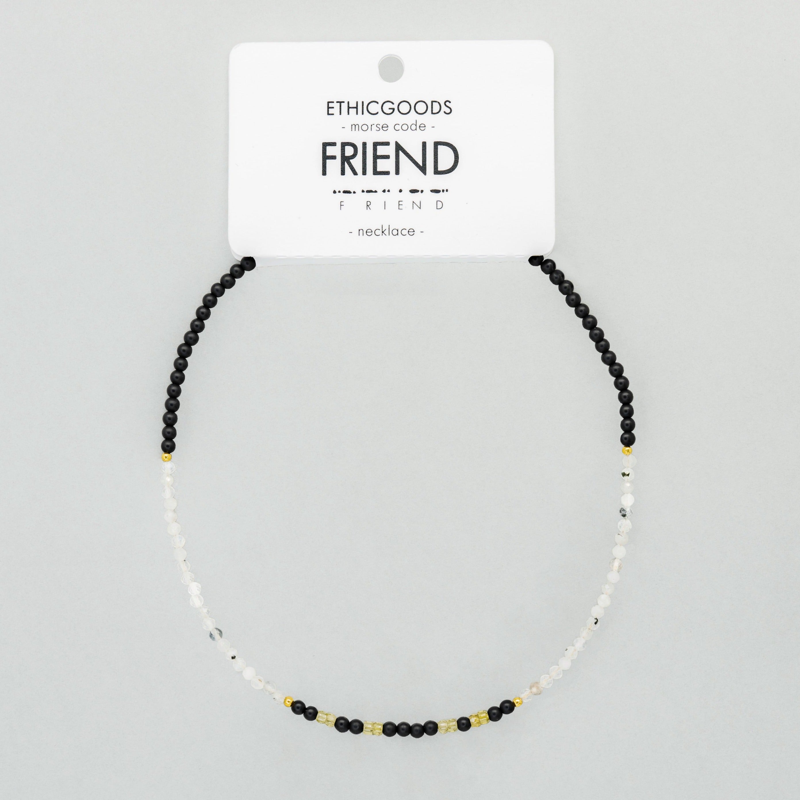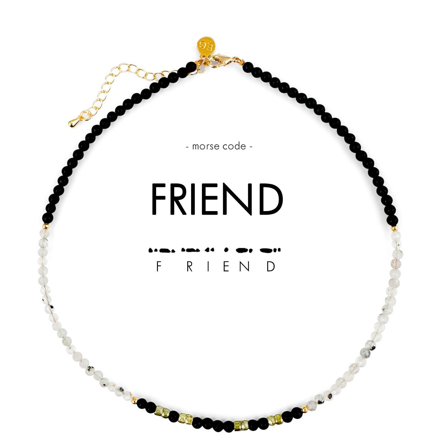 How to read your jewelry: A Morse Code dot is one bead and a dash is two beads in the alternating color. Start at the small gold spacer bead and follow the Morse Code spelling around the necklace!