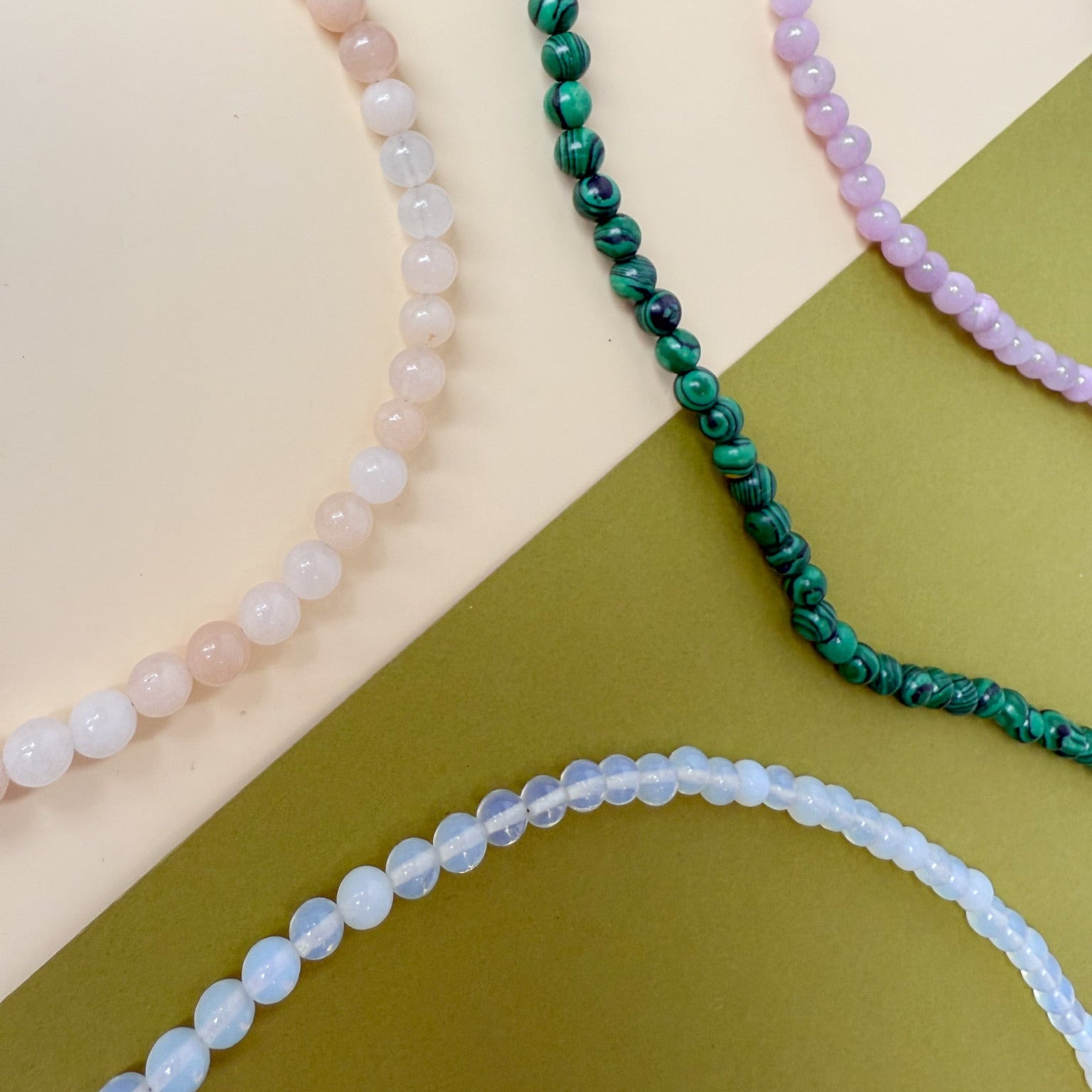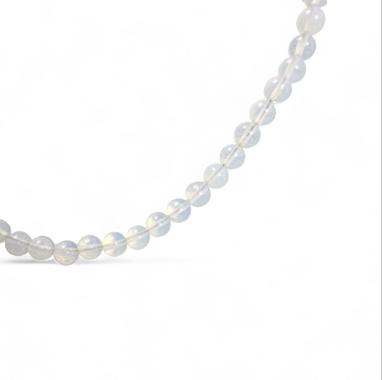 This necklace features 6mm natural moonstone beads—known for their luminous shimmer and deeply intuitive energy. Believed to support inner clarity and new beginnings, moonstone carries a quiet kind of magic. Each bead reflects light uniquely, making this necklace as dynamic as the one who wears it.