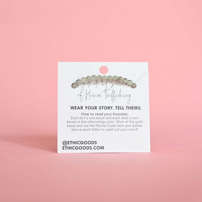 This bracelet looks great alone or stacked with your other favorite Morse Code or stone stacking bracelets!