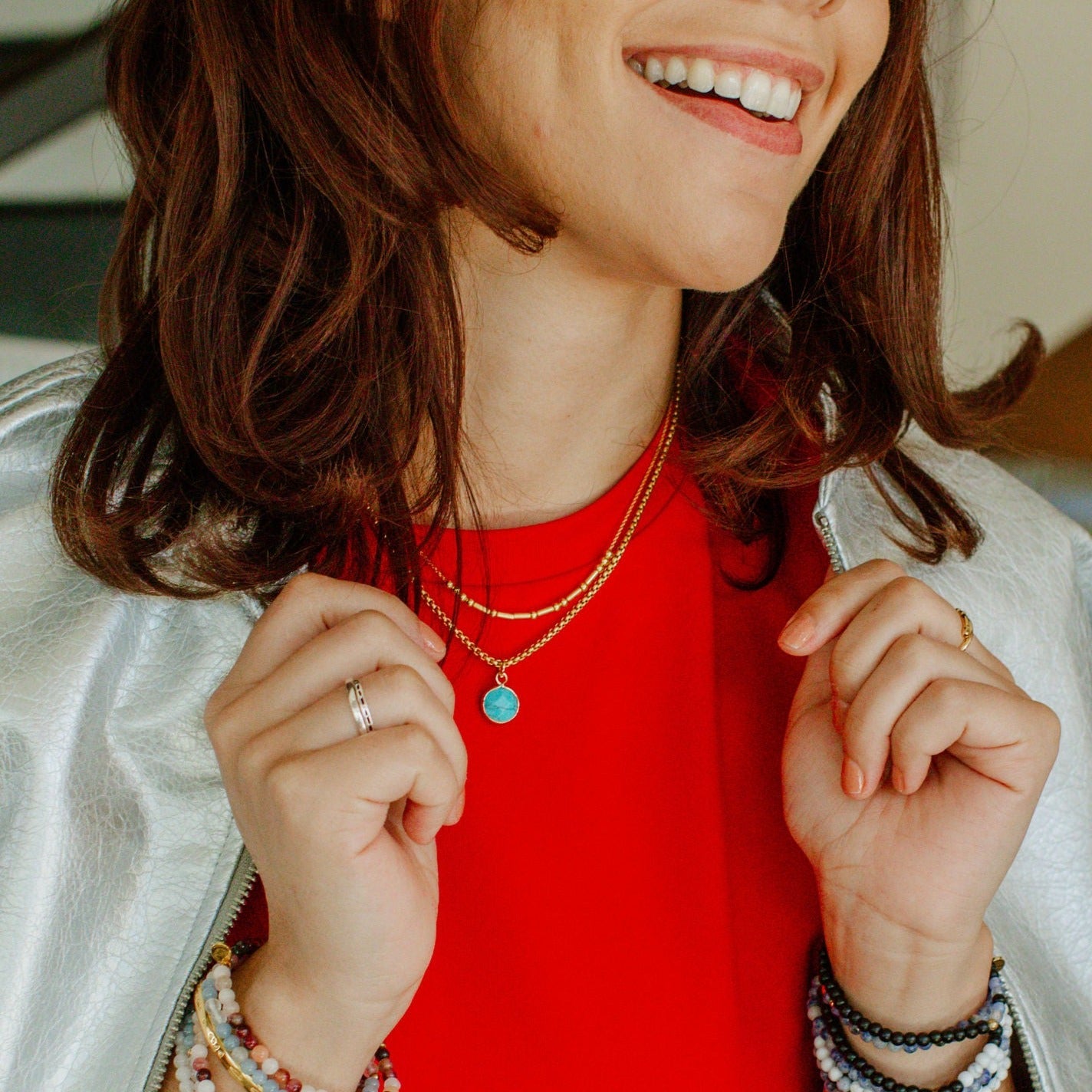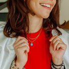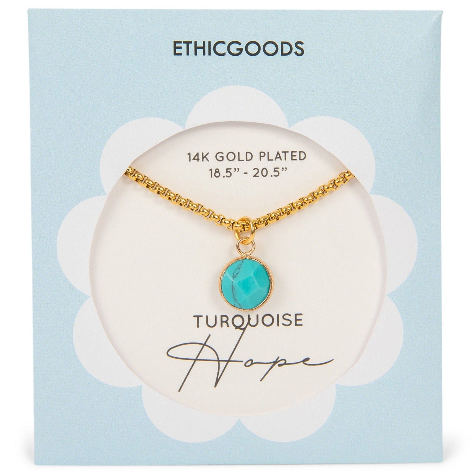 Take your style to the next level with this Classic Gold Stone Pendant Necklace in Turquoise. Turquiose symbolizes hope and brings a touch of elegance to any outfit. It looks beautiful as a stand alone piece, or you can layer it with our other fun, textured, meaningful necklaces.