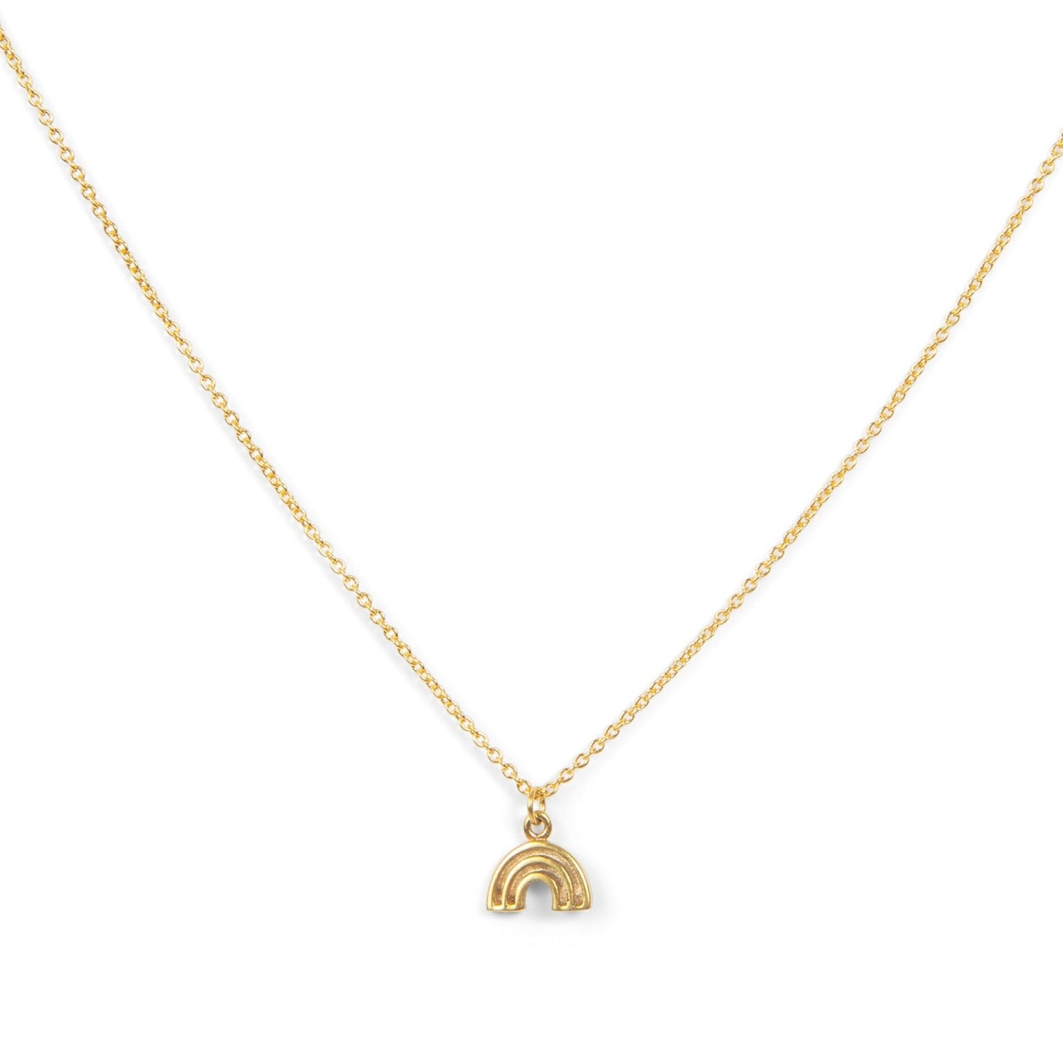 Layer on hope with this pendant necklace featuring a vibrant rainbow pendant. Made with 14k gold plated sterling silver, this necklace is not only stylish but also serves as a reminder of hope after a storm.
